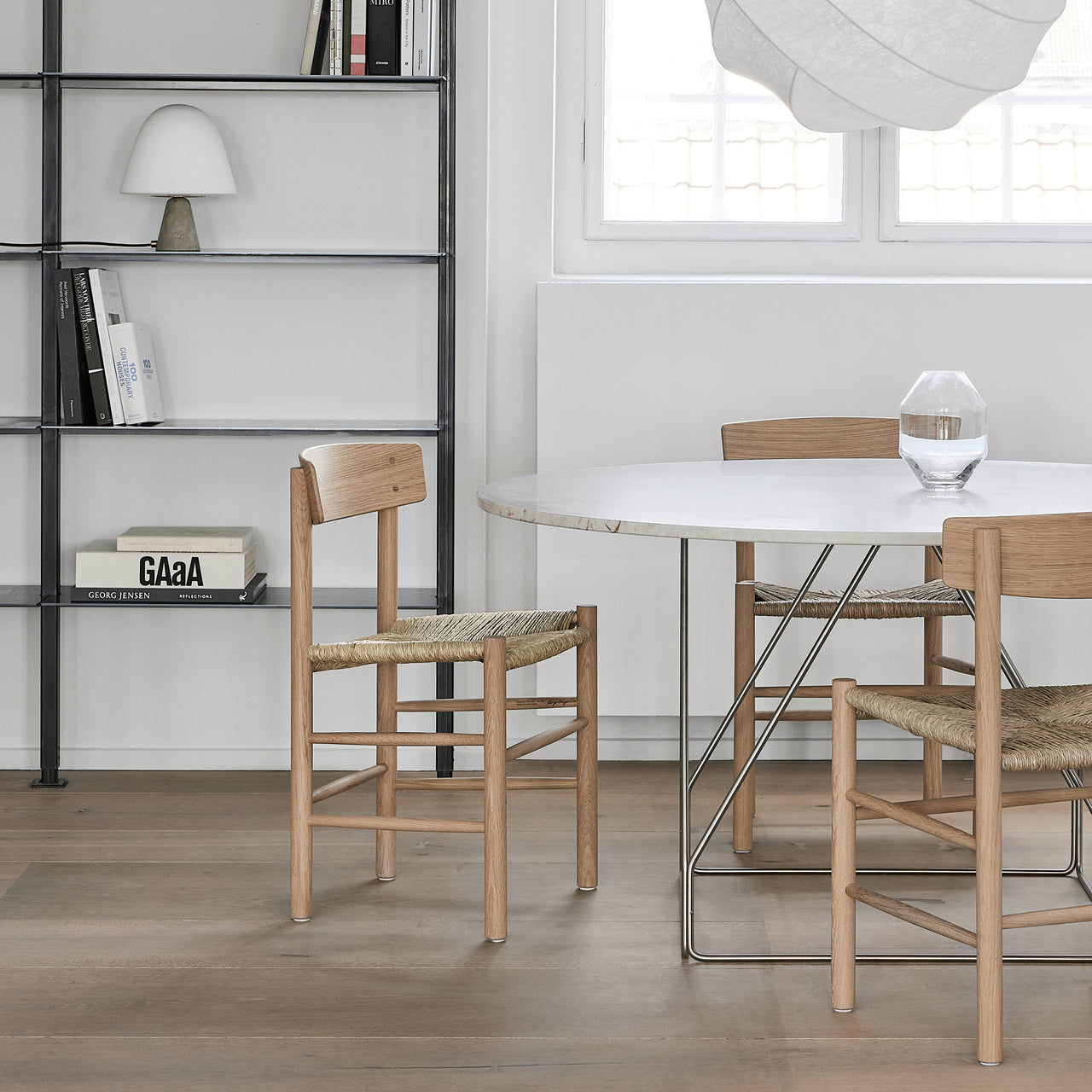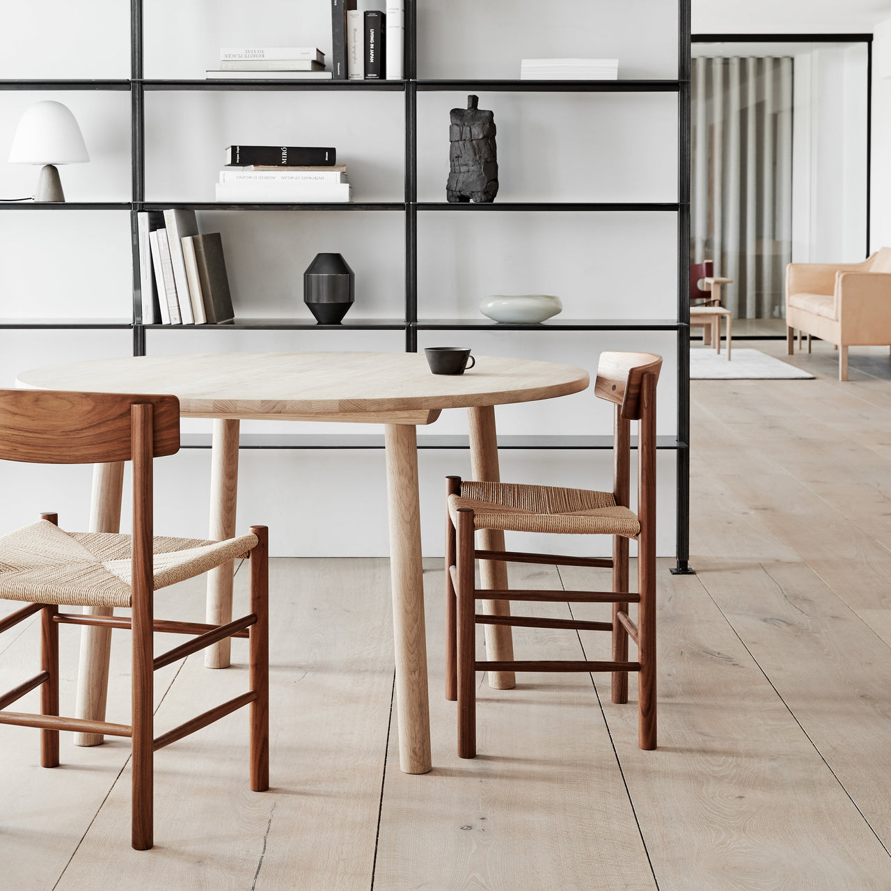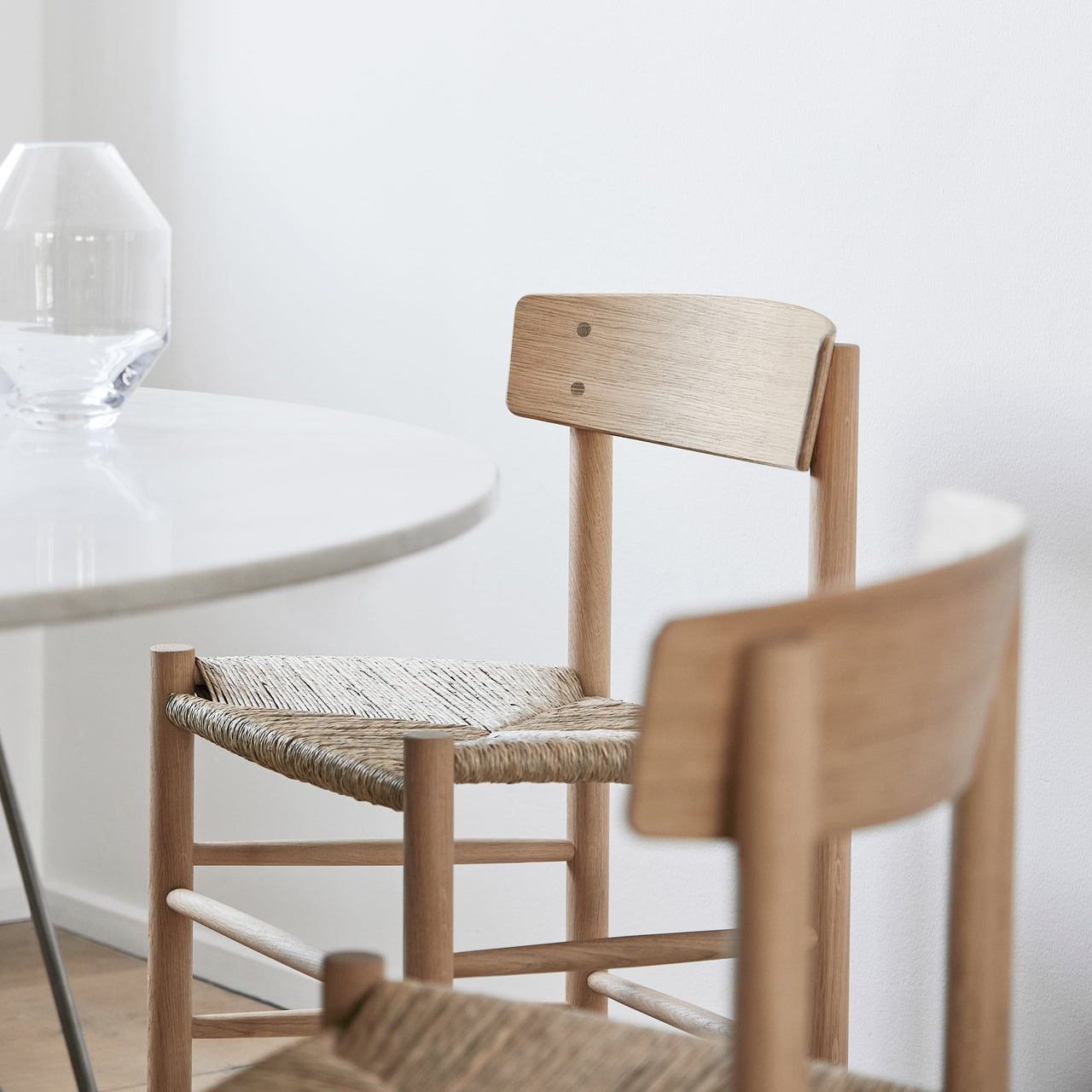 More than 75 years on, designer Børge Mogensen’s truly iconic J39 side chair — a standard oft-seen in private homes, brasseries and public institutions ever since — seems destined to happily endure. Lauded for its sturdiness, versatility and the power of its modest character, the wooden seating has been continuously produced since its launch in 1947. Fashioned in solid timber in oak and walnut varieties, J39 offers a range of finishes to complement its emblematic woven paper-cord seat.
