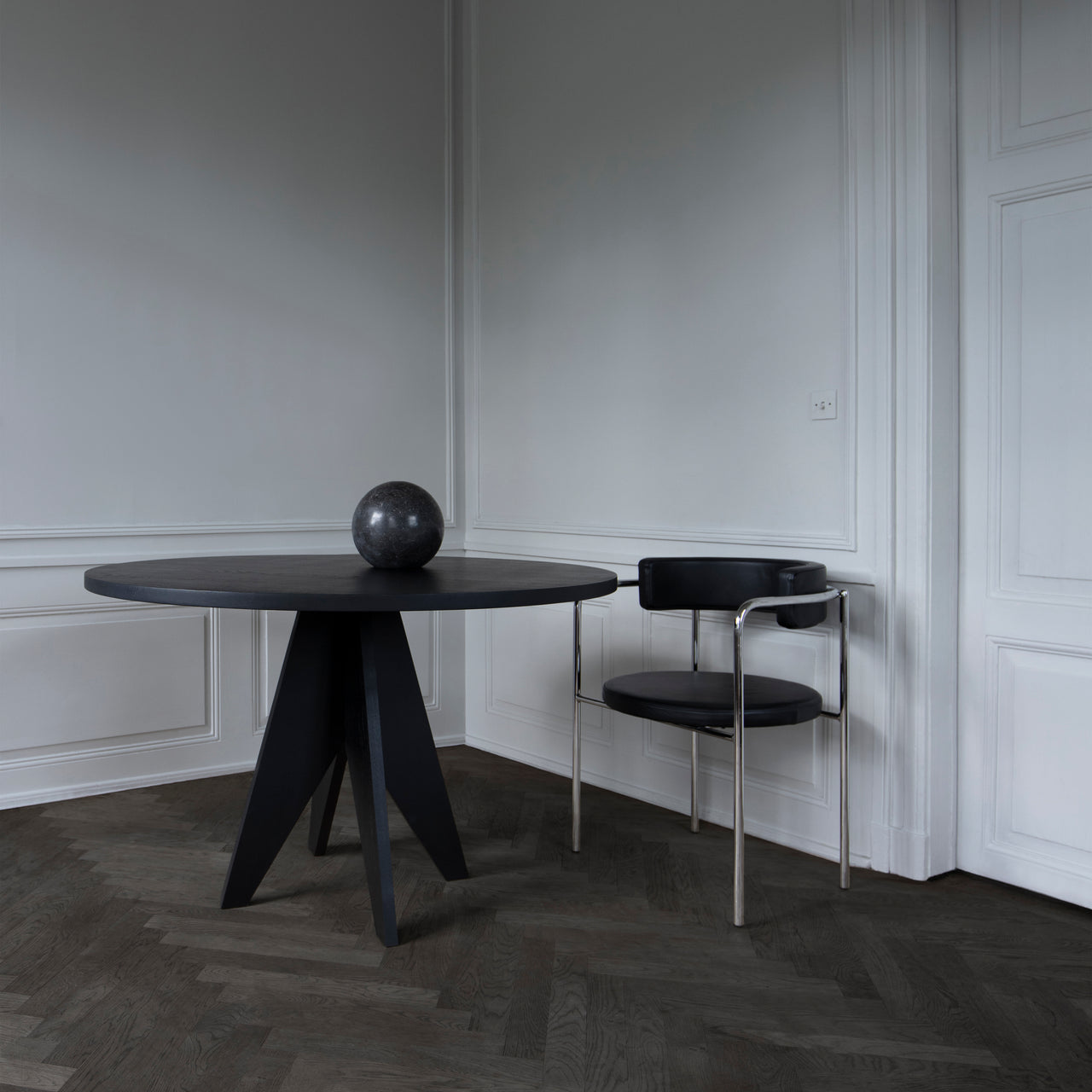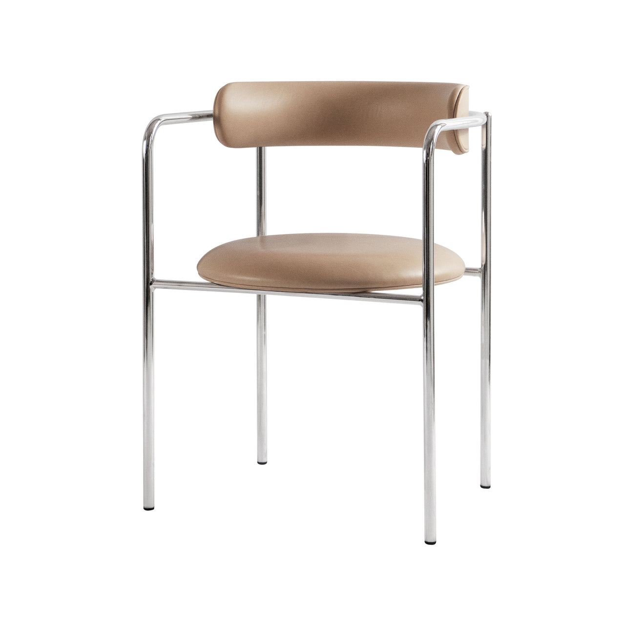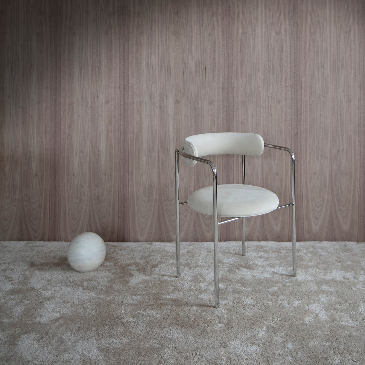 Ida Linea Hildebrand nods to the Bauhaus in her minimalist FF Chair’s geometrics, recalling its timeless functionality as a benchmark to continued sustainability in the future. Made by skilled European craftsmen, the classic steel-tube frame in black or chrome is built to last, with accompanying upholstery options offered in fine fabric and leather.