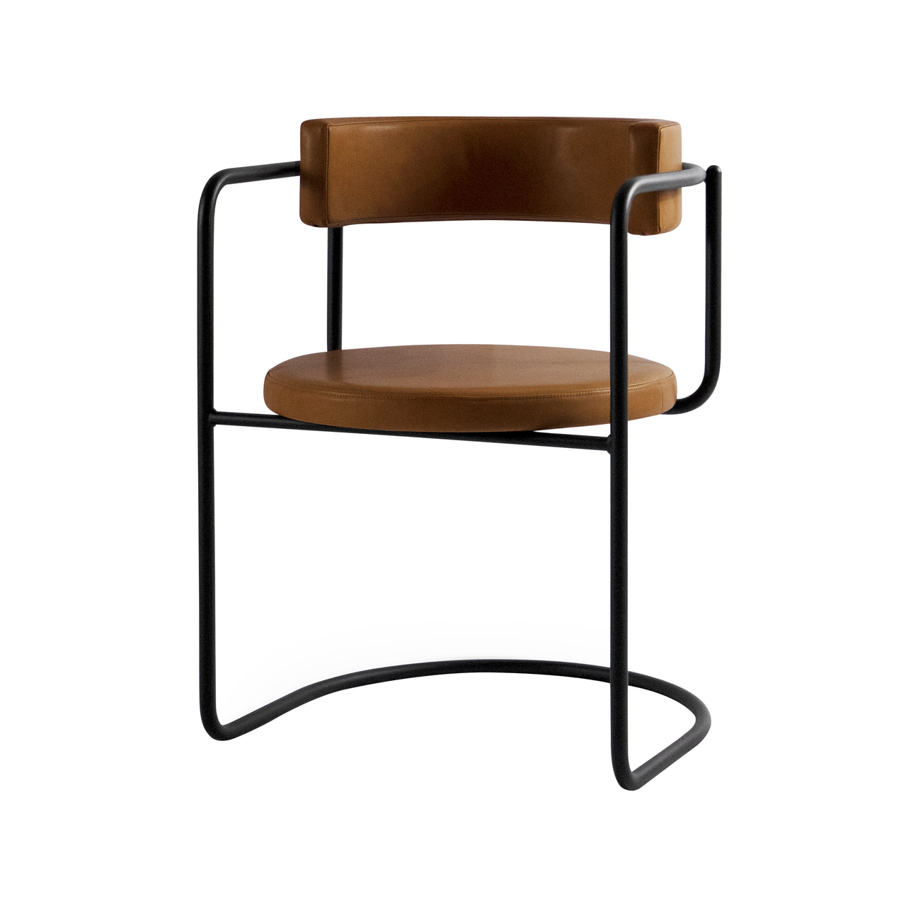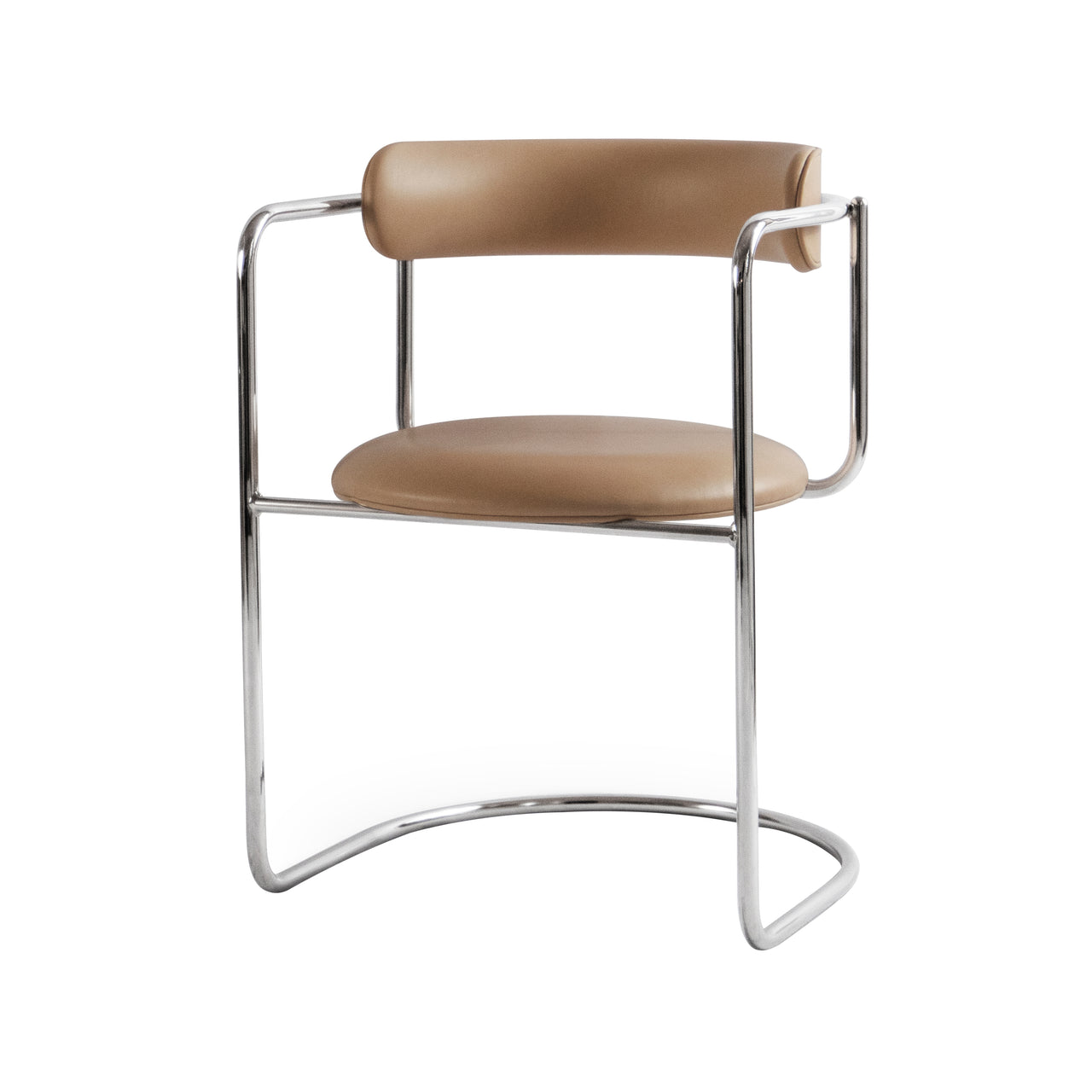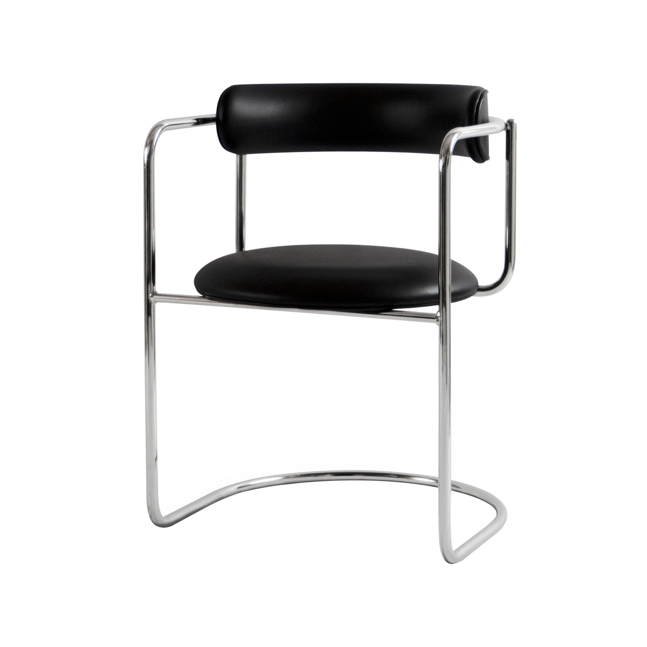 Leaning into a Midcentury vibe, Ida Linea Hilderbrand’s FF Chair offers a version with a space-saving cantilevered base in the series' signature tubular metal with the further option of a cubic or rounded seat. Custom upholstery from a selection of fine fabric or leathers complements the steel frame in gleaming chrome or black powder-coat finish.