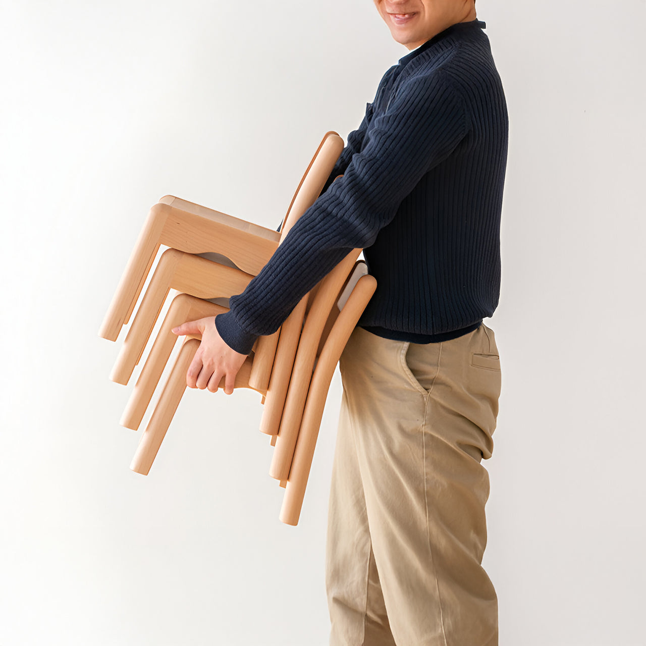 The HIDA Kids Furniture Stacking Chair is designed for children aged 1 to 5 years, providing comfort and proper support. Made from solid wood, it brings a natural and warm feel. Its stackable design allows for easy storage, making it practical for homes, playrooms, and educational spaces. The chair is available in multiple sizes to suit different age groups, ensuring it grows along with your child.