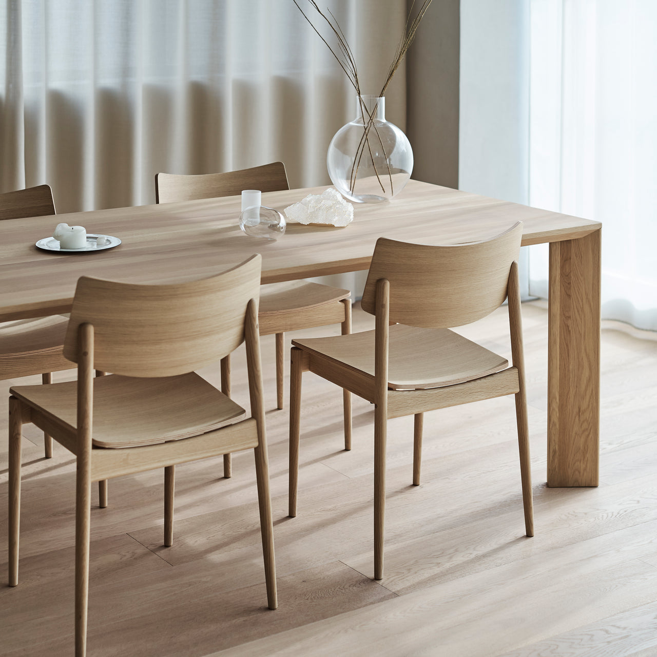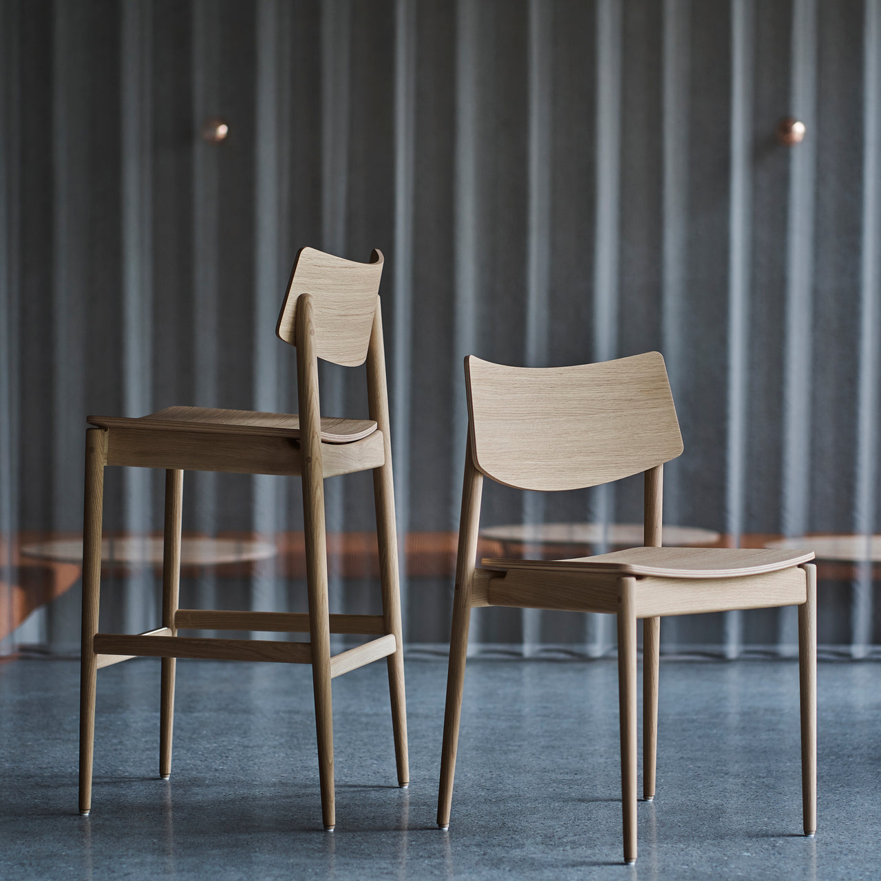 Named for the famed shopping district in Tokyo, Shibuya Cafe Dining Chair was originally designed for an airy coffee shop within a nearby park as a casual but precisely conceived perch to sit in comfortably for a long time. Tokyo designer Keiji Ashizawa’s tailor-made seating is also stackable when not in use and follows in maker Karimoku Case's outstanding heritage of finely crafted furniture, available in a choice of solid oak finishes.