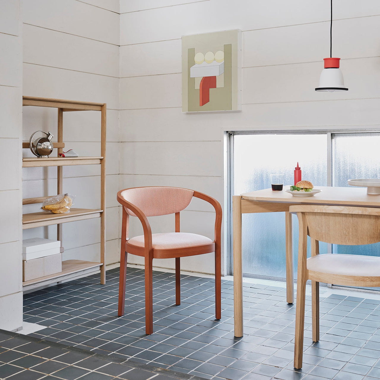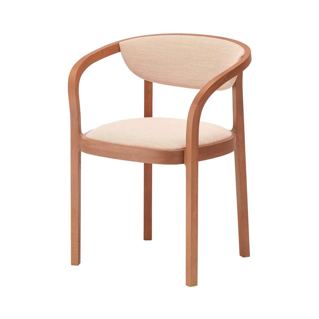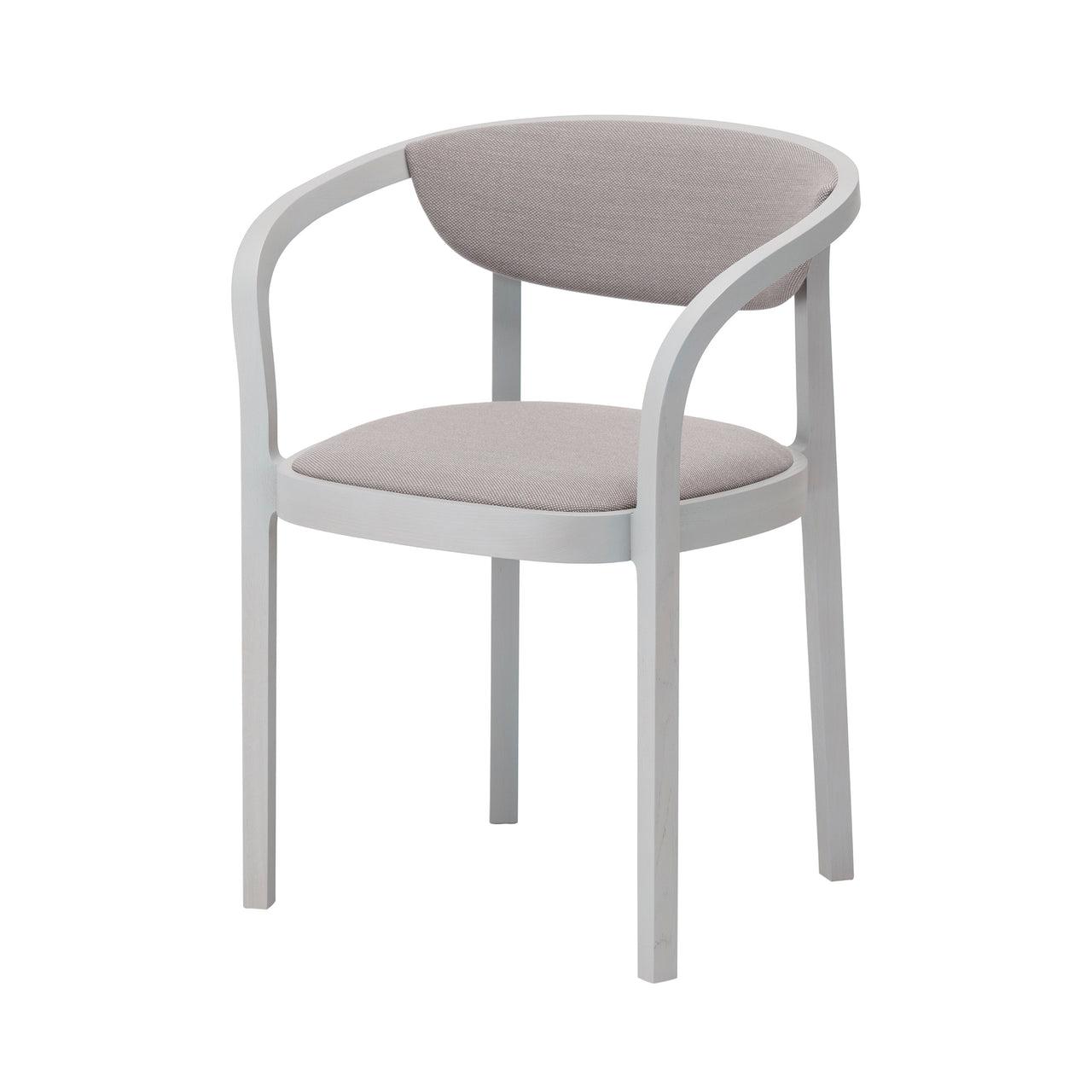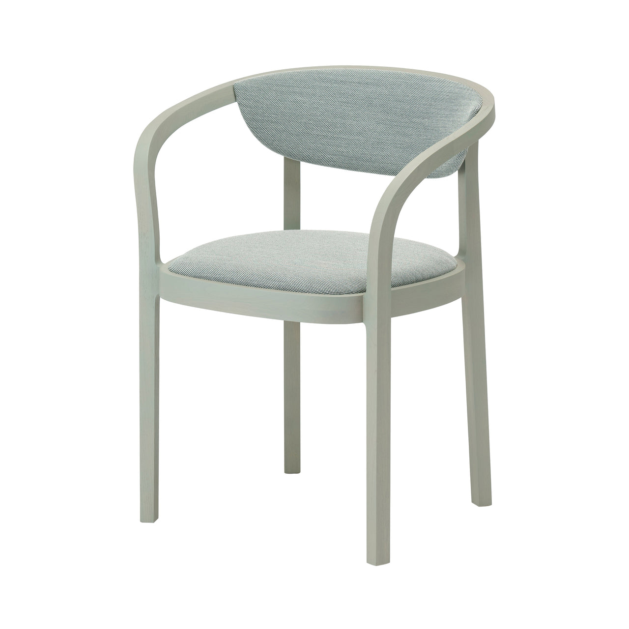 With its padded seat and back clad in Kvadrats Steelcut textile in one of 4 colorways to match its finely crafted solid-oak frame and bent plywood backrest, Chesa underscores the refined air of its calm and elegant design by Jórg Boner. As either a meeting or dining choice, the chair is distinctly characterized by the continuous curvature of the line that follows from the front legs to the backrest, making it a comfortable, cosseted space that also allows for sitting diagonally and facing conversation partners on each side.