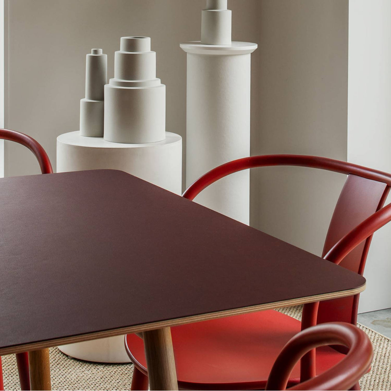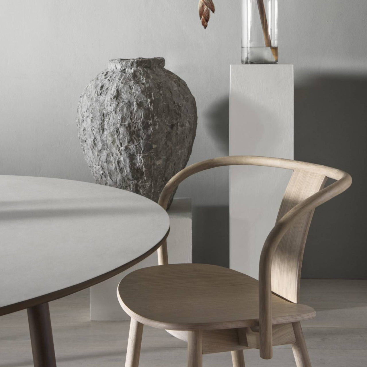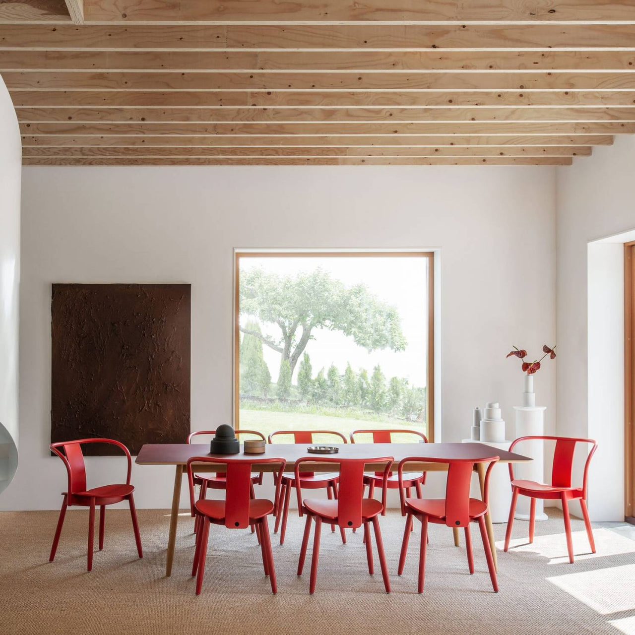 Design chief and founder Chris Martin blends both Nordic and Far Eastern style cues in Massproductions' wood armchair. Beautifully proportioned with rounded arms and a narrow backrest that contributes to its air of lightness, Icha is carefully crafted with artisan techniques from solid, layer-glued and steam-bent timbers. Available in a statement red lacquer as well as beech woodgrain finishes, it's both versatile and timeless.