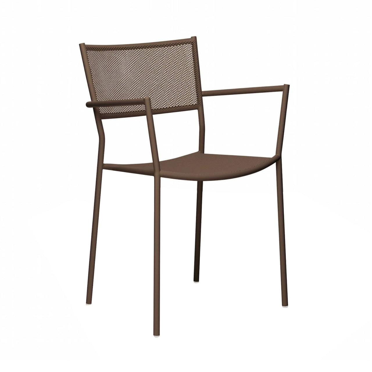 An armchair version complements Massproductions' contemporary outdoor seating collection Jig Mesh. Designer Chris Martin puts a sophisticated edge on an industrial material, using steel tubing for the framework of his dining chair with expanded sheet-metal seat and backrest. Sturdy, lightweight and stackable, the colorful seating lends a stylish note to patios and backyards and mixes well with the company's Tio and Odette tables (also at A+R).