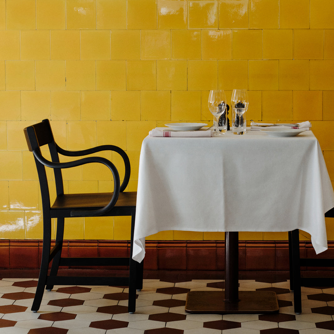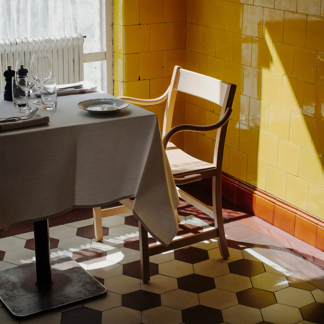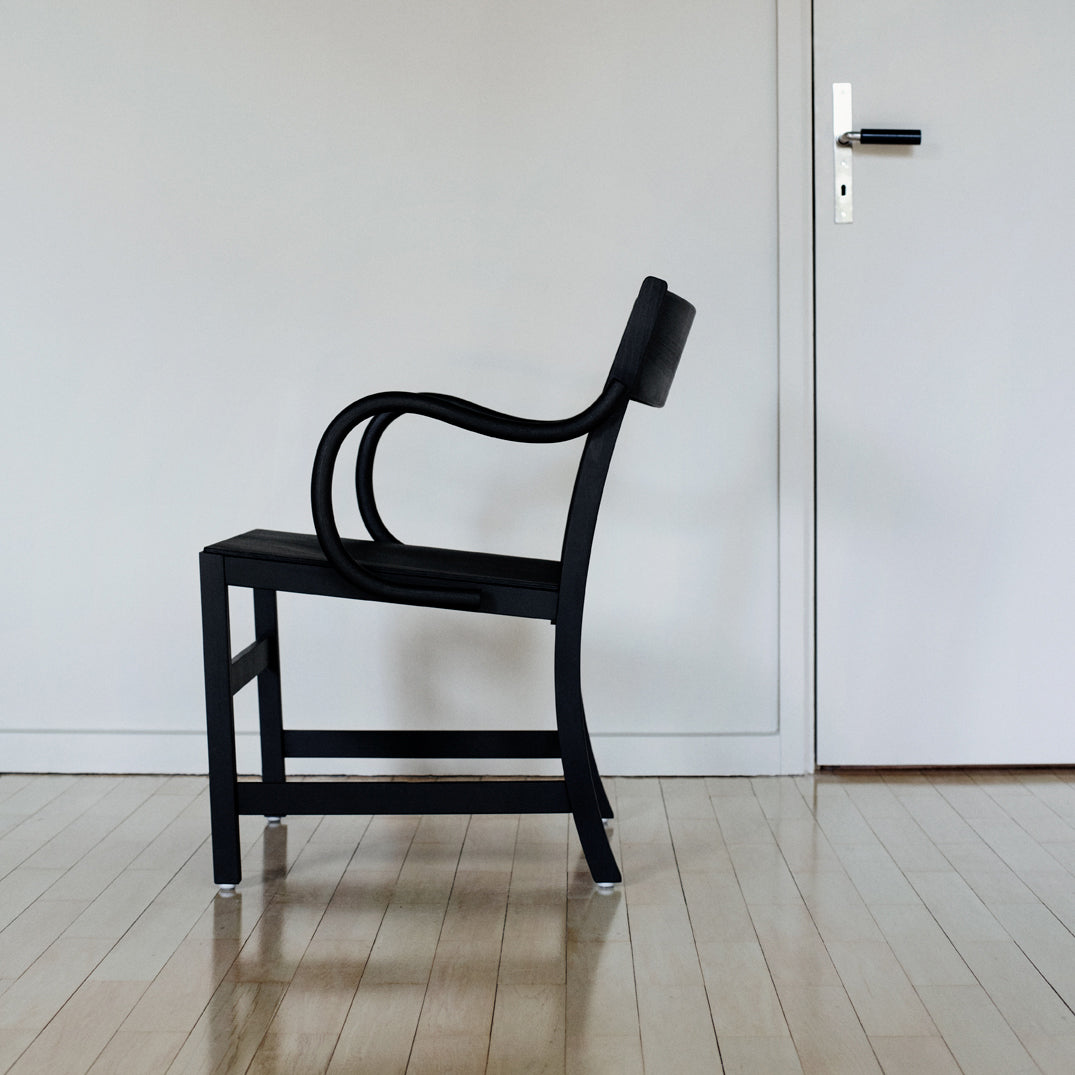 An armchair version of Massproductions' upscaled Waiter XL brings added ease to the dining experience. Named for the servers who inspired it, the Stockholm-based company's signature chair is crafted from FSC-certified, European solid wood. Even the back chair legs are curved inward under the seat to keep passers-by from tripping. At regular chair height but featuring broader seat proportions, this XL definitely encourages lingering at the table.