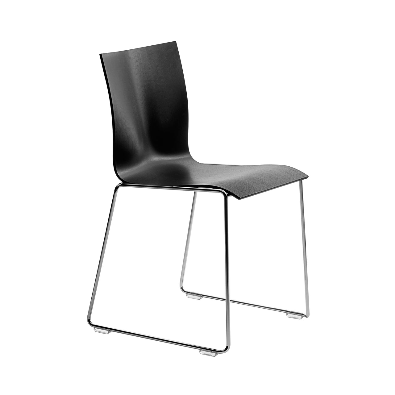 Chairik’s model with a weight-distributing sled base for easy movability is also conveniently stackable when not in use. Erik Magnussen’s compression-molded chair offers primary back support without pressure on the spine, delivering long-wearing comfort. The Danish designer’s signature 1996 seating has steel-tube legs in a choice of polished chrome or black powder coat, with its molded shell in options including plastic, melamine, veneer, lacquer, lazure or PUR foam finishes.