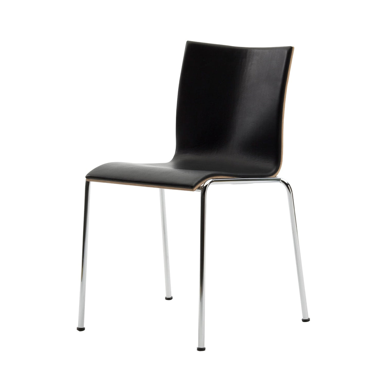 With a 4-legged base, Chairik XL offers expanded proportions for extra roominess in addition to its signature stacking-friendly design. Erik Magnussen’s compression-molded seating has functioned timelessly since its debut in 1996, providing back support without putting pressure on the spine for comfort in a range of sitting positions. The accompanying 4-legged tubing base is available in polished chrome or matte black with a range of seat options to suit any environ in plastic, melamine, varied veneers, lacquer finish or translucent lazure.