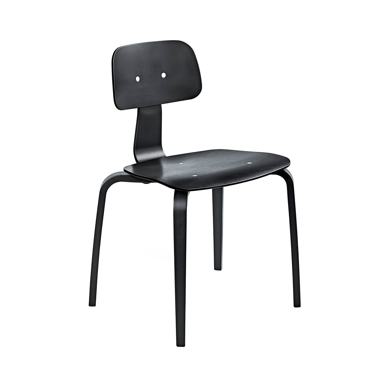 A stackable version of Kevi with 4 wooden legs riffs on the original office classic after nearly 60 years on wheels. Still active today, legendary Danish designer Jørgen Rasmussen retains the ergonomic seat and back of his timeless swivel chair first introduced in 1958. The updated model is completely fashioned in compressed molded veneer in walnut, oak or scintillating lazure hues like soft rose, deep peach or midnight blue.