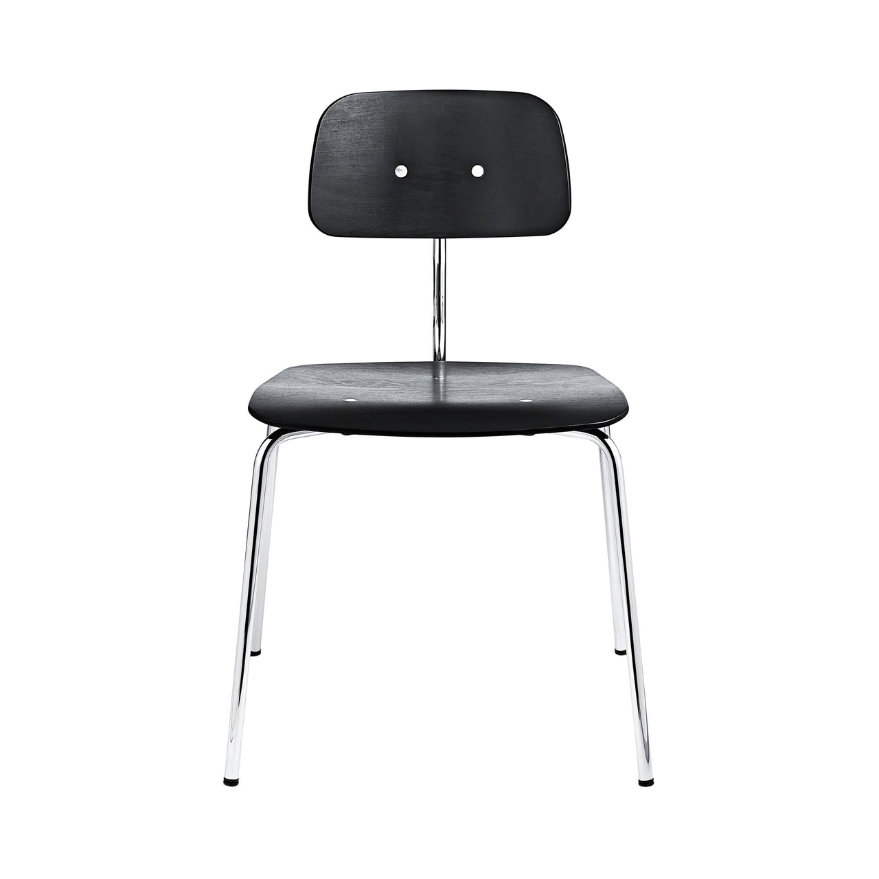 With his classic Kevi office chair still going strong nearly 60 years later, it seemed time for a second look at architect Jørgen Rasmussen's sketches for stackable seating—and the 4-legged 2060 was the happy result. Other than its steel tubing legs in polished chrome finish or powder-coated in black, this version is a remake of his classic swivel chair from 1958 with the same supportive, comfortable seat and backrest, offered in a range of woodgrain finishes or rich lazure shades.