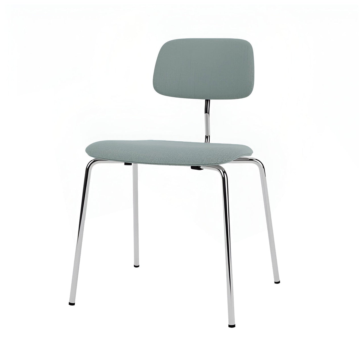 A fully upholstered seat, with or without the option of a matching upholstered backrest, provides an attractive upgrade to designer Jørgen Rasmussen's 4-legged version of his iconic office chair. Kevi 2060 replaces the central swivel of the midcentury model with 4 steel tubing legs, finished in either polished chrome or black powder coat. Continuing Jørgen's pioneering belief that supportive seating enhances the ability to get work done, this updated Kevi version still maintains the original's seat and back contours.