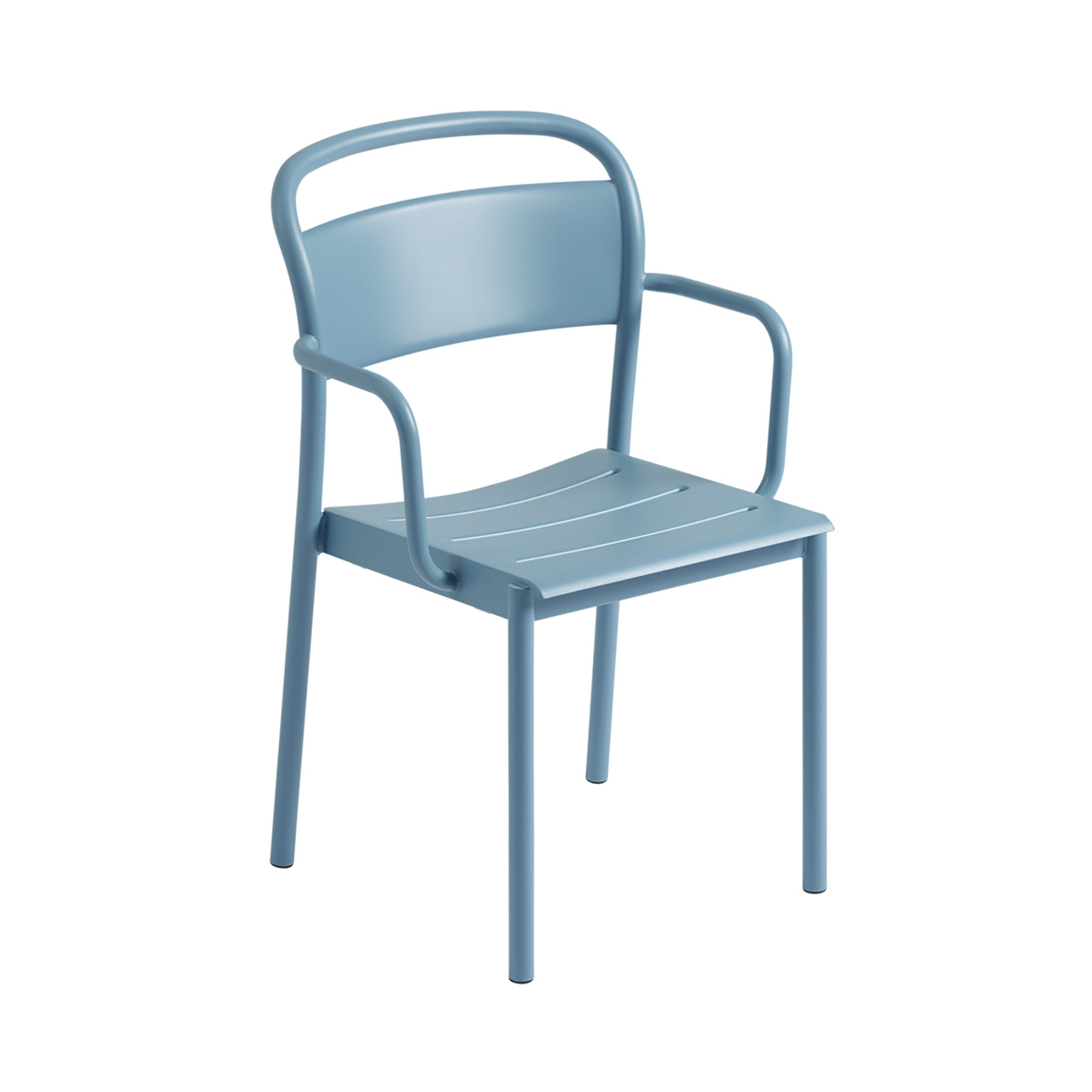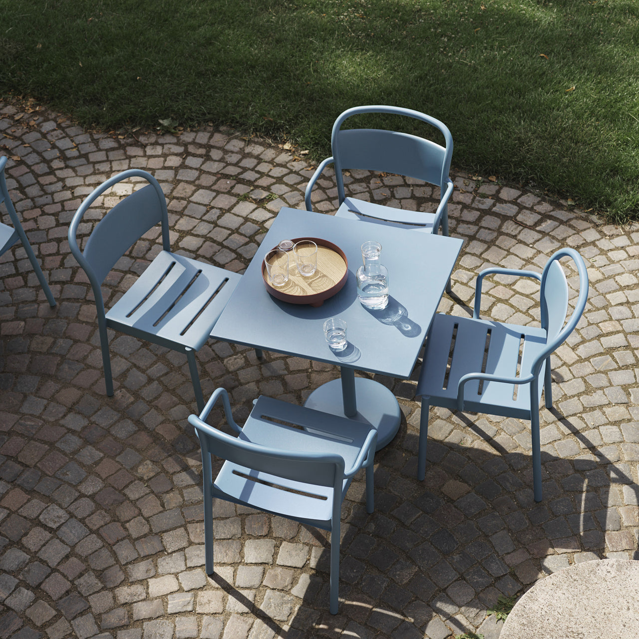 Muuto’s outdoor Linear Steel series adds a stackable armchair characterized by clean lines and a curved backrest and seat for comfort. Designer Thomas Bentzen plies a durable material with a sophisticated touch in welded galvanized steel with a weather-resistant, powder-coat matte finish. Featuring a choice of curated colors and subtle spacing in the seat to aid in water runoff, the seating’s graceful proportions and slender armrests timelessly complement any outdoor setting.