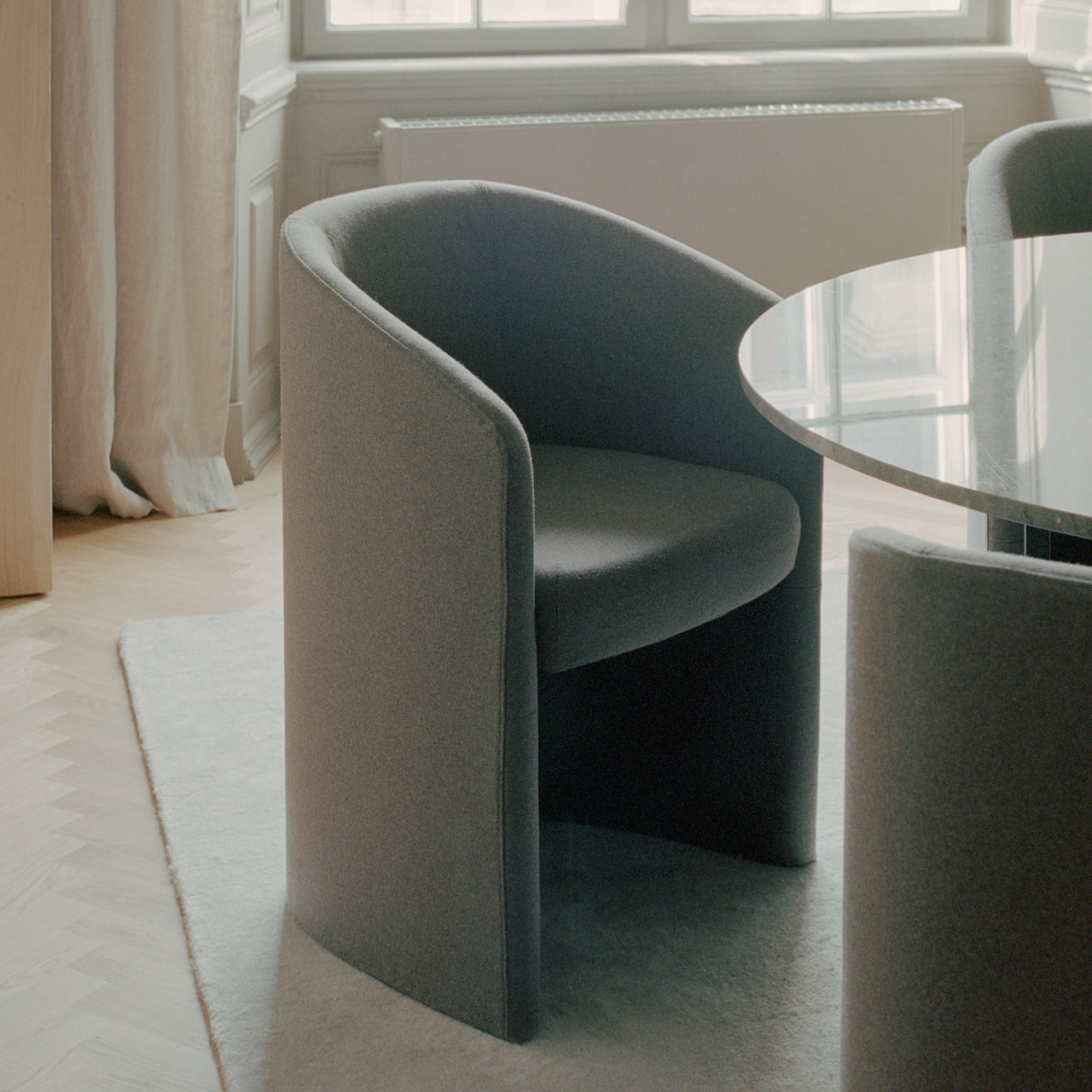 Extending the New Works' series by Copenhagen design studio Arde, Covent Club Chair offers great sitting comfort while maintaining a visual lightness and an upright bearing suitable for dining. Pleasingly curved, its upholstered surfaces and recessed spaces create a silhouette defined by both softness and precision.