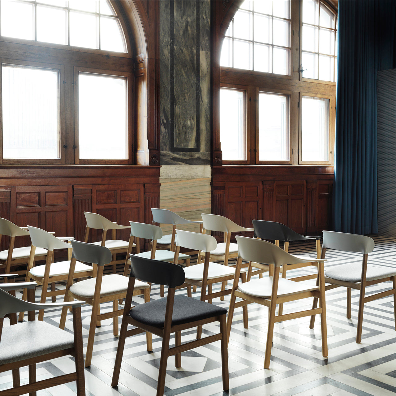 Simon Legald considers the honest simplicity of Danish design and recasts it with a hi-tech spin in his Herit Chair. The anchor piece for his aptly named collection (a shortening of the word “heritage”) sees its seat and back fashioned in plastic instead of the traditional wood, molded over a core of foam to create its ergonomic contours. With legs crafted in solid oak, Simon’s update makes for a versatile and timeless seating choice.