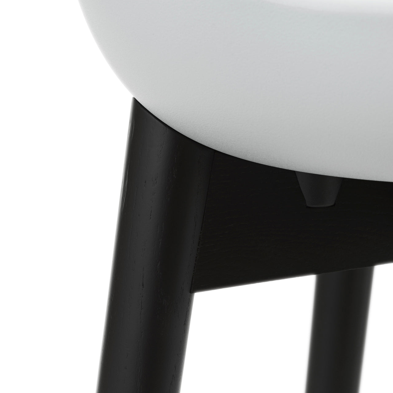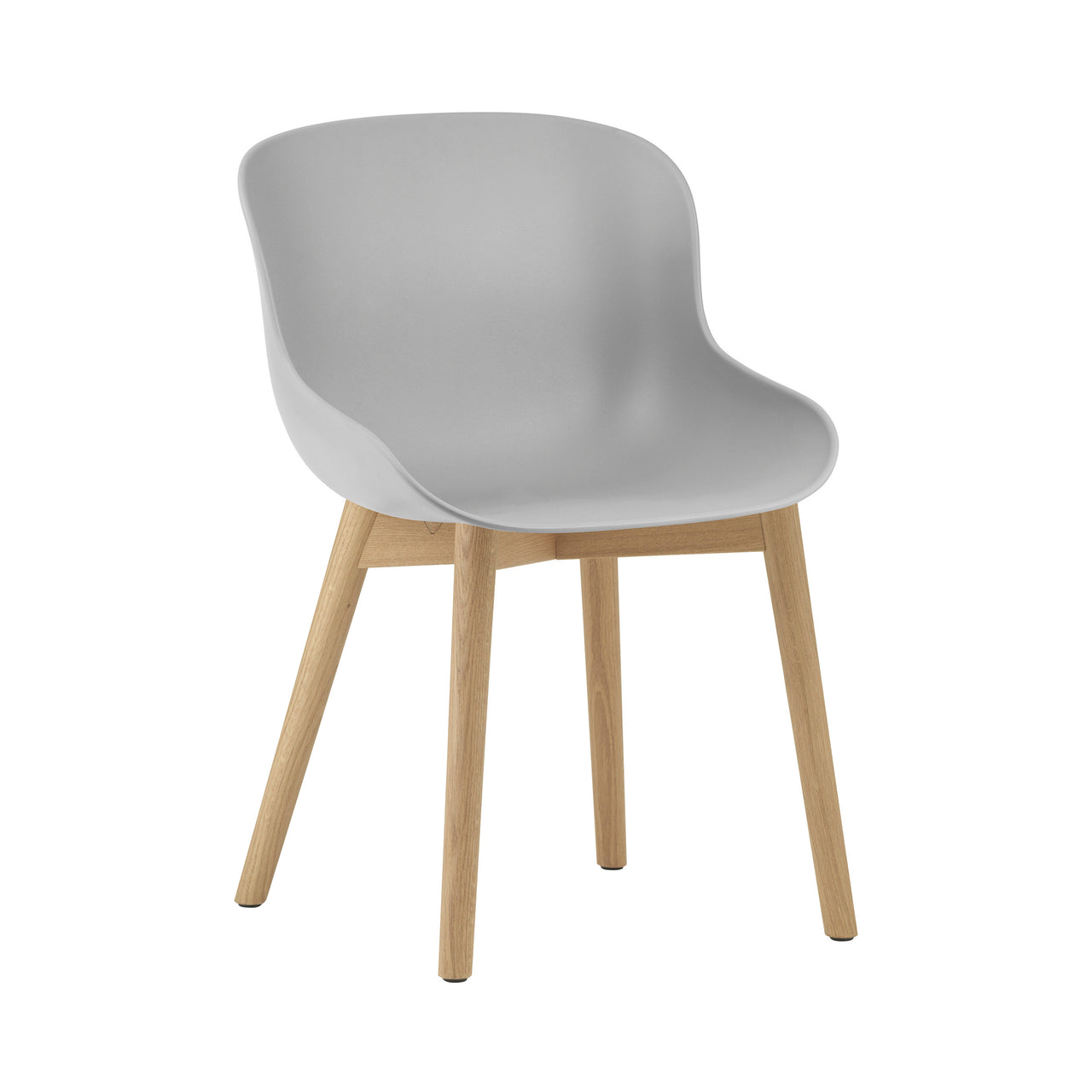 A wooden base brings an organic dimension to Hyg's embracingly sculpted contours with an ample seat and slightly higher curving sides. Designer Simon Legald's shell chair in pressed polypropylene has notably generous proportions that allow for a wide range of relaxed seating postures. Inspired by the Danish ideal of hygge, a feeling of contentment lingers in both the visual experience of the design and overall comfort.
