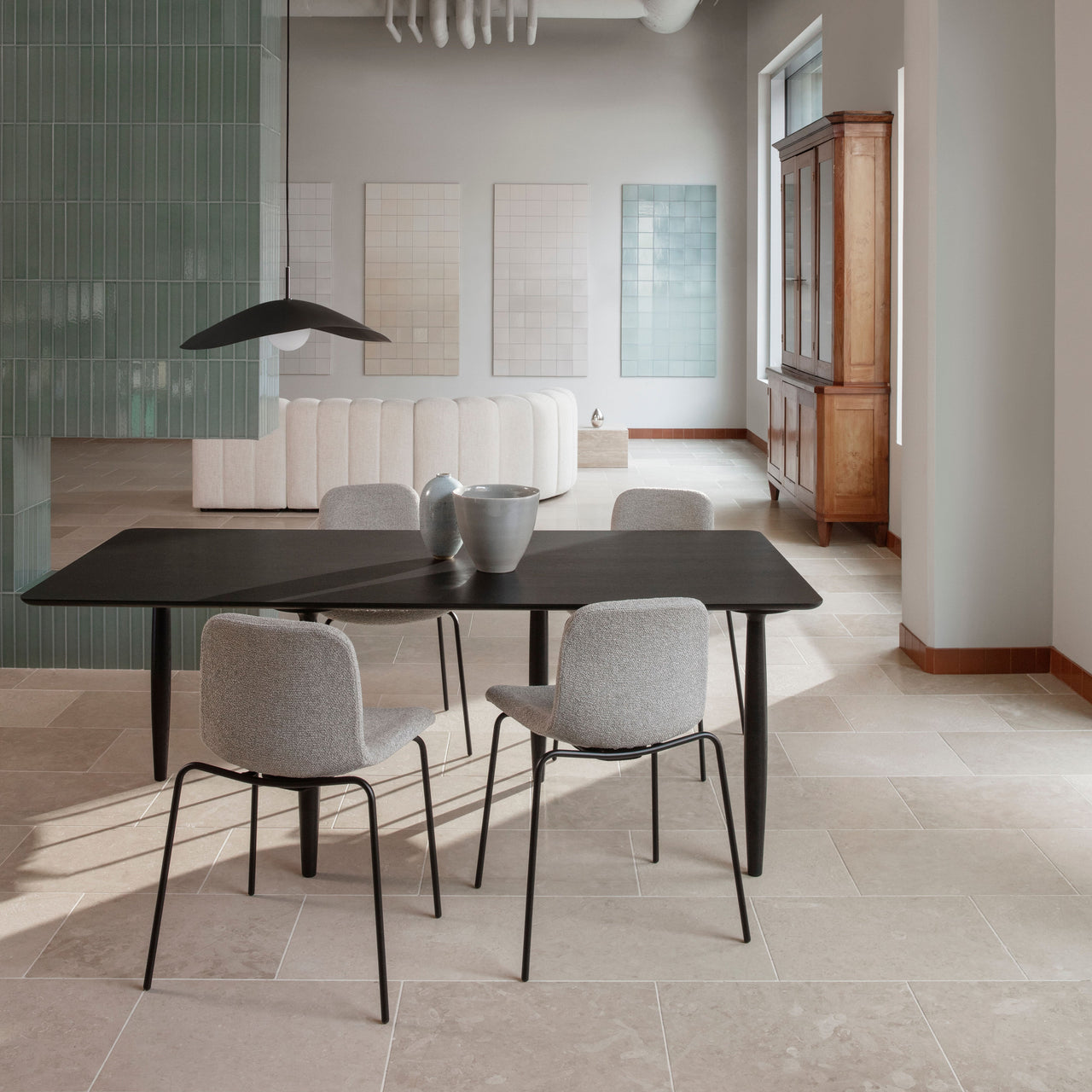 The Langue Chair stands out with its distinctively curved seat, modeled after the shape of a tongue. It emphasizes a flowing, organic silhouette that is designed to follow the bodys shape. This organic shape starts wide at the front, offering ample seating space, and tapers as it moves toward the back, almost hugging the body for support. The back of the chair curves gently to cradle the spine. Available with a steel base in finishes black or brass. The soft upholstery version includes a foam layer, making it ideal for long dining or work sessions. Upholstered in a range of high performance fabric or leather for even more added comfort.
