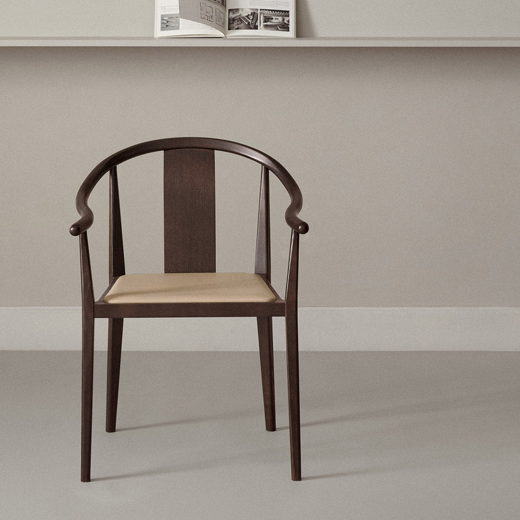 The Shanghai Armchair is a modern interpretation of the ancient Chinese Horseshoe Chair featuring a solid steam-bent ash wood frame and upholstered seat. Its iconic high back and gently curving armrest create a supportive, enveloping seat with just the right proportions. Available in 4 ash finishes.