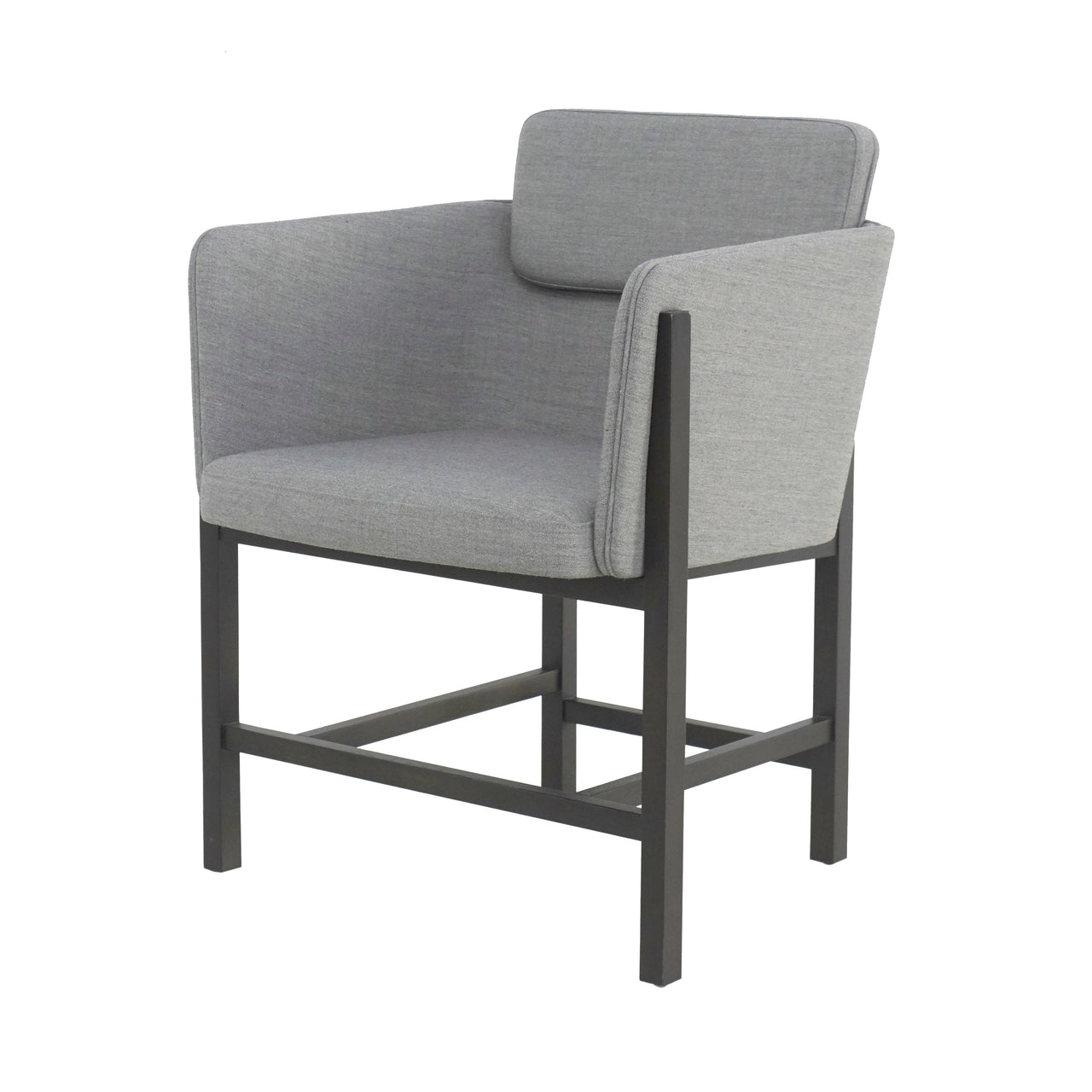 A fully upholstered dining chair with arms showcases Aya collection’s minimalist but luxurious design codes. Stellar Works and OEO Studio’s first collaboration hews to a shared aesthetic, from the small wooden joints and angles used to the stitching on the signature seating. Melding Japanese culture and Scandinavian aesthetics, the geometric frame is fashioned in solid oak or walnut to complement custom upholstery in a fine textile or rich leather.