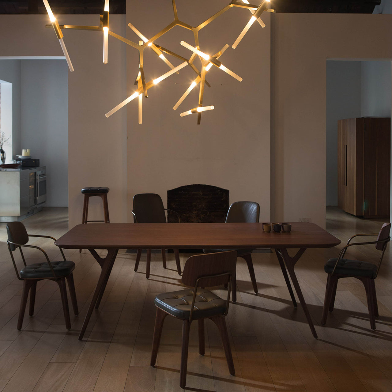 Neri&Hu initiate both their own design projects for a number of brands as well as oversee the entire creative direction of luxury furniture maker Stellar Works, also based in Shanghai. At A+R, their lighting for Barcelona’s Paranchilna and for Dutch house Moooi is also represented. “We are still too young to have a distinct language,” notes Rosanna, “so we flow in many directions depending on the specificity of the project.”