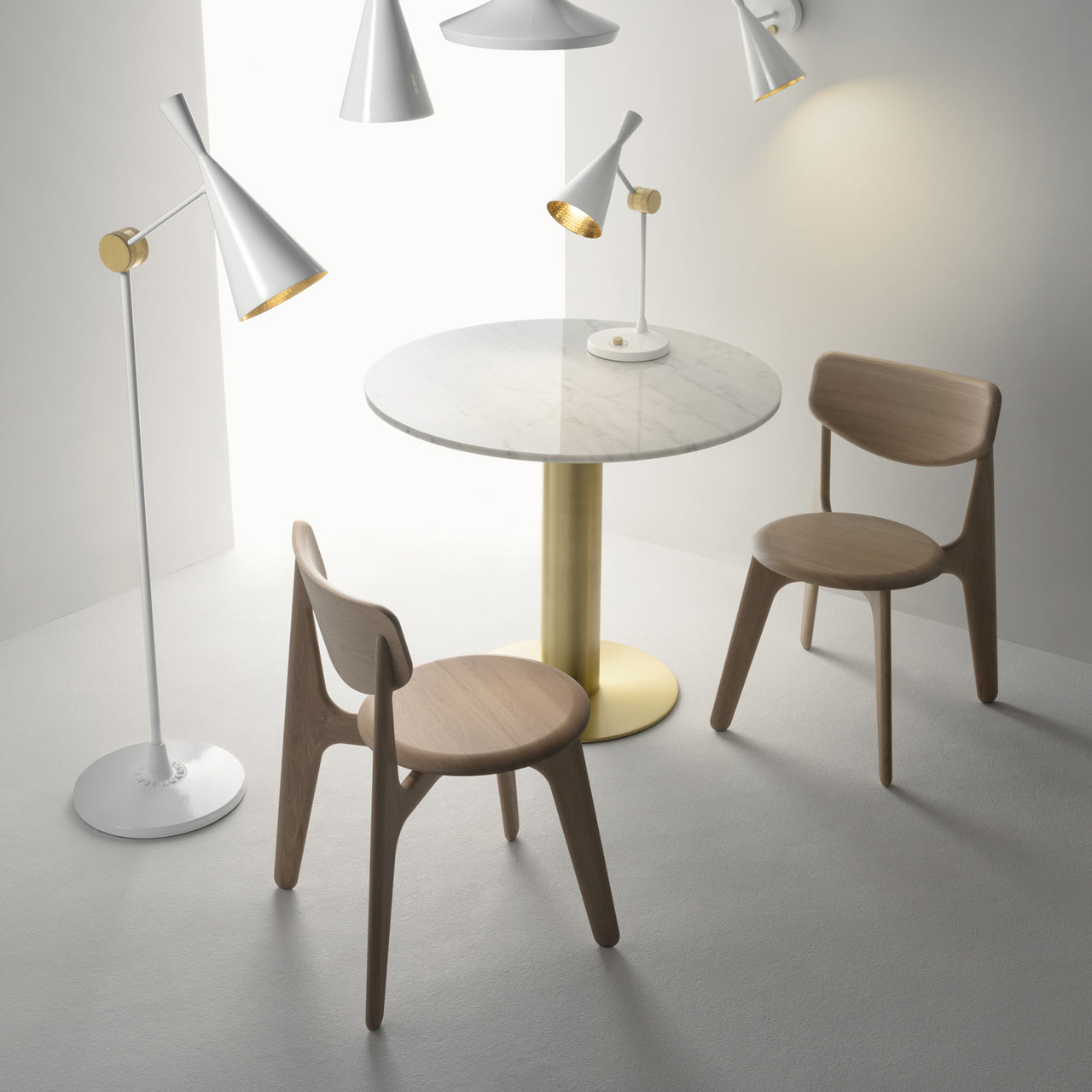 For his solid-oak dining chair, Tom Dixon wanted “an honest piece of skilled woodwork.” Sourced from sustainably managed forests, Slab offers inviting comfort in its robust proportions softened with a gently radius edge. The surface of the wood is deeply brushed to expose the grain—in natural finish, black lacquer or fumed oak.