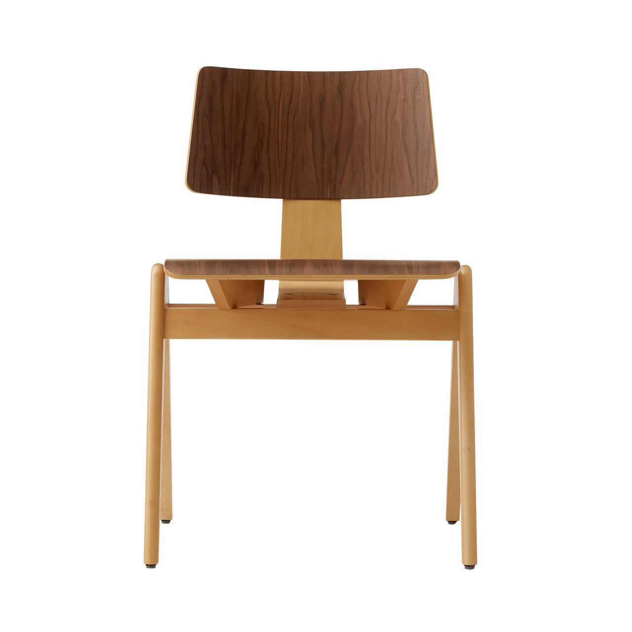 The Stacking Chair is made from laminated beech or walnut veneer with a solid beech frame, it offers a natural, warm look. The A-shaped legs provide stability while maintaining a sleek silhouette. Designed for convenience, the chair can be stacked up to five units, making it ideal for both residential and commercial use. It works well as dining or office seating and pairs effortlessly with other pieces from the Daystak collection. Plastic gliders are included to protect floors and ensure easy movement.