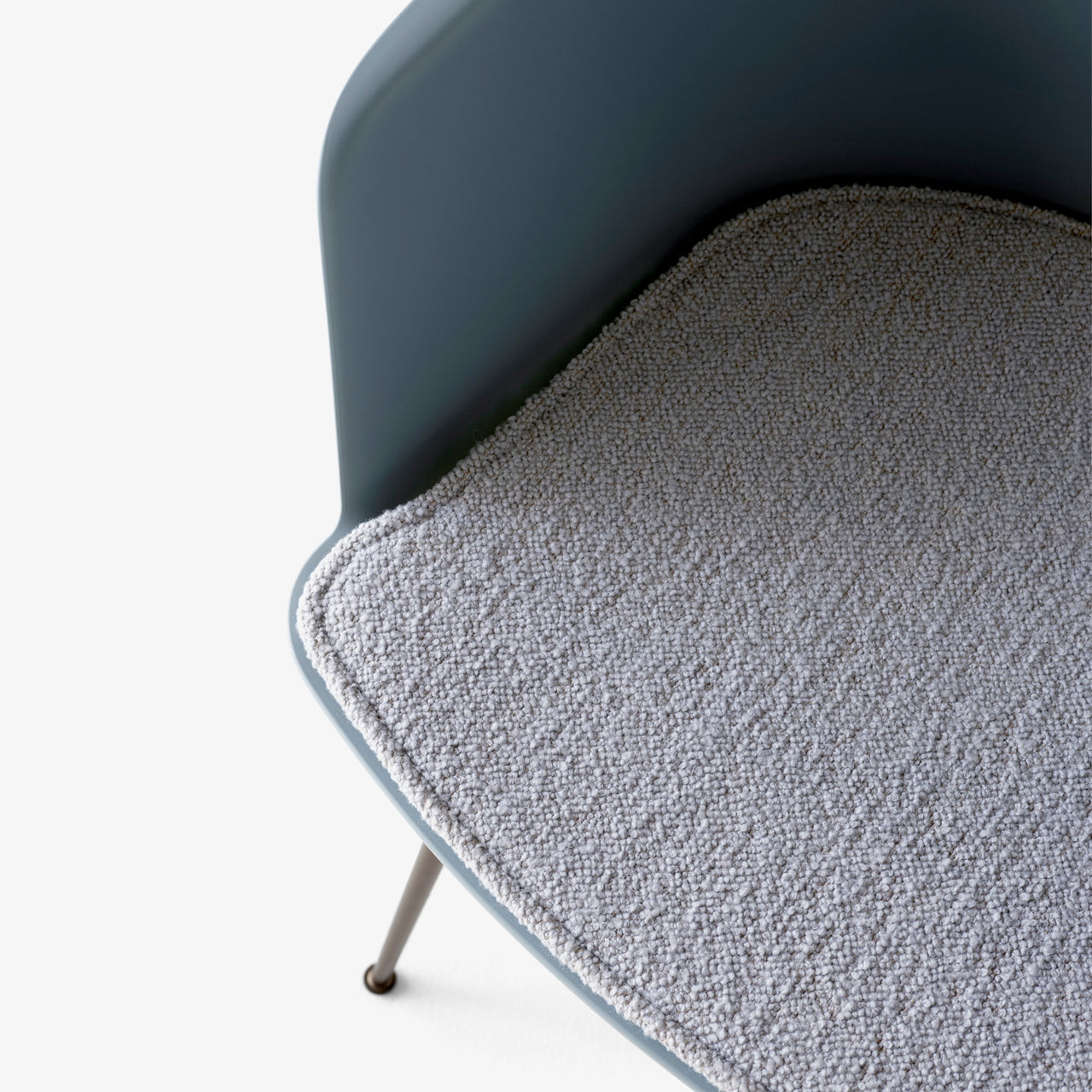 Hee Welling's inventive sustainable take on a Scandinavian molded classic adds an armchair version with a custom upholstered seat. Rely's 100% recycled plastic shell curves around the body and extends out along the side to provide optimal back support.HW34: Set on steel tube legs in black or bronzed finish, the chair comes in a range of Nordic-influenced hues with the foam seat covered in an individualized choice from the range of fabric or leather selections.