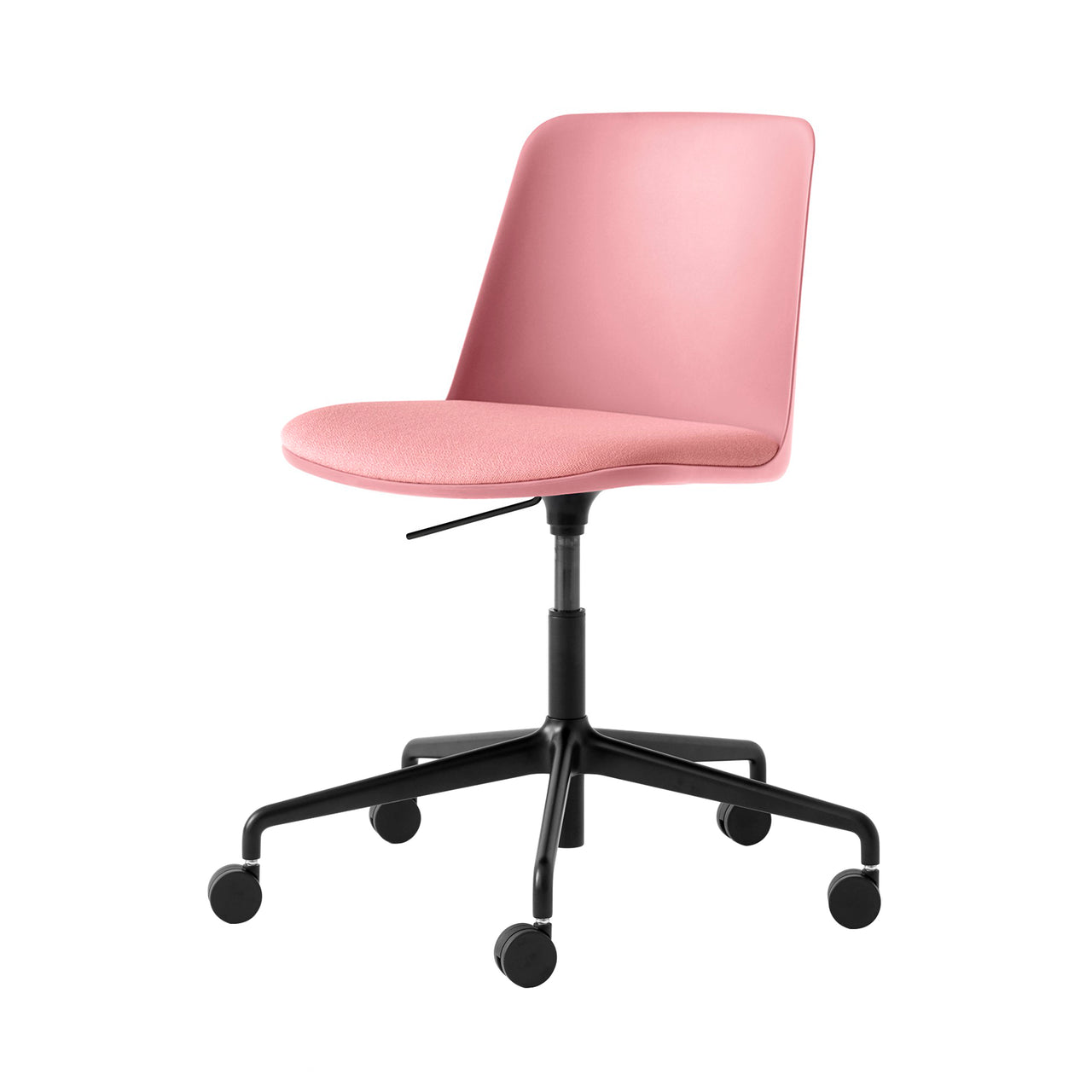 An upholstered seat cushion and a swivel base with castors elevate this version of Rely, made from 100% recycled plastic. Danish designer Hee Welling’s eco-friendly version of the iconic Scandinavian shell chair hews to the classic molded silhouette with its characteristic ergonomic ease. This version features automatic gaslift height adjustment and a sturdy 5-star aluminum swivel base with matching castors. Both leather and fabric choices for the seat complement a range of chair hues.