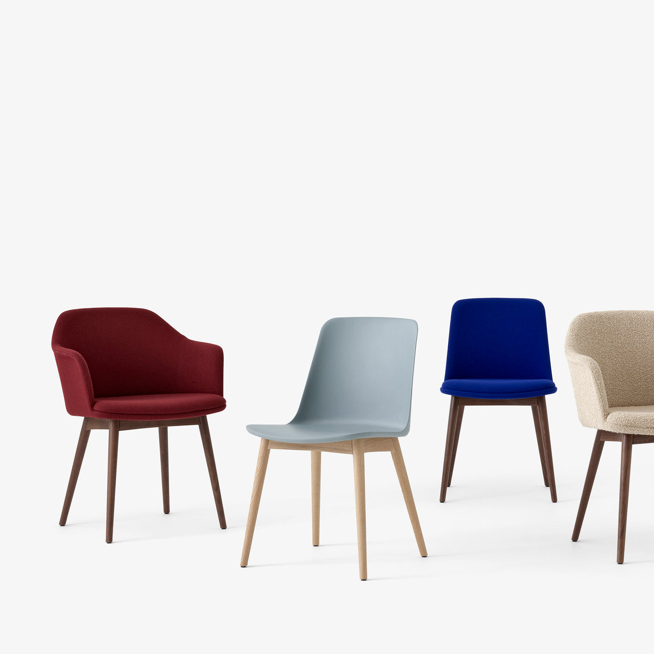 Danish furniture designer Hee Welling’s sustainable take on the familiar Scandinavian shell chair in 100% recycled plastic adds a version with rich oak or walnut legs. Rely boasts much more than its eco-friendly credentials, with a streamlined profile and comfort-inducing ergonomic seat. Choose from a sophisticated rainbow of colors or chic neutrals to complement the desired woodgrain finish, especially apropos pulled up to a desk or at the dining table.