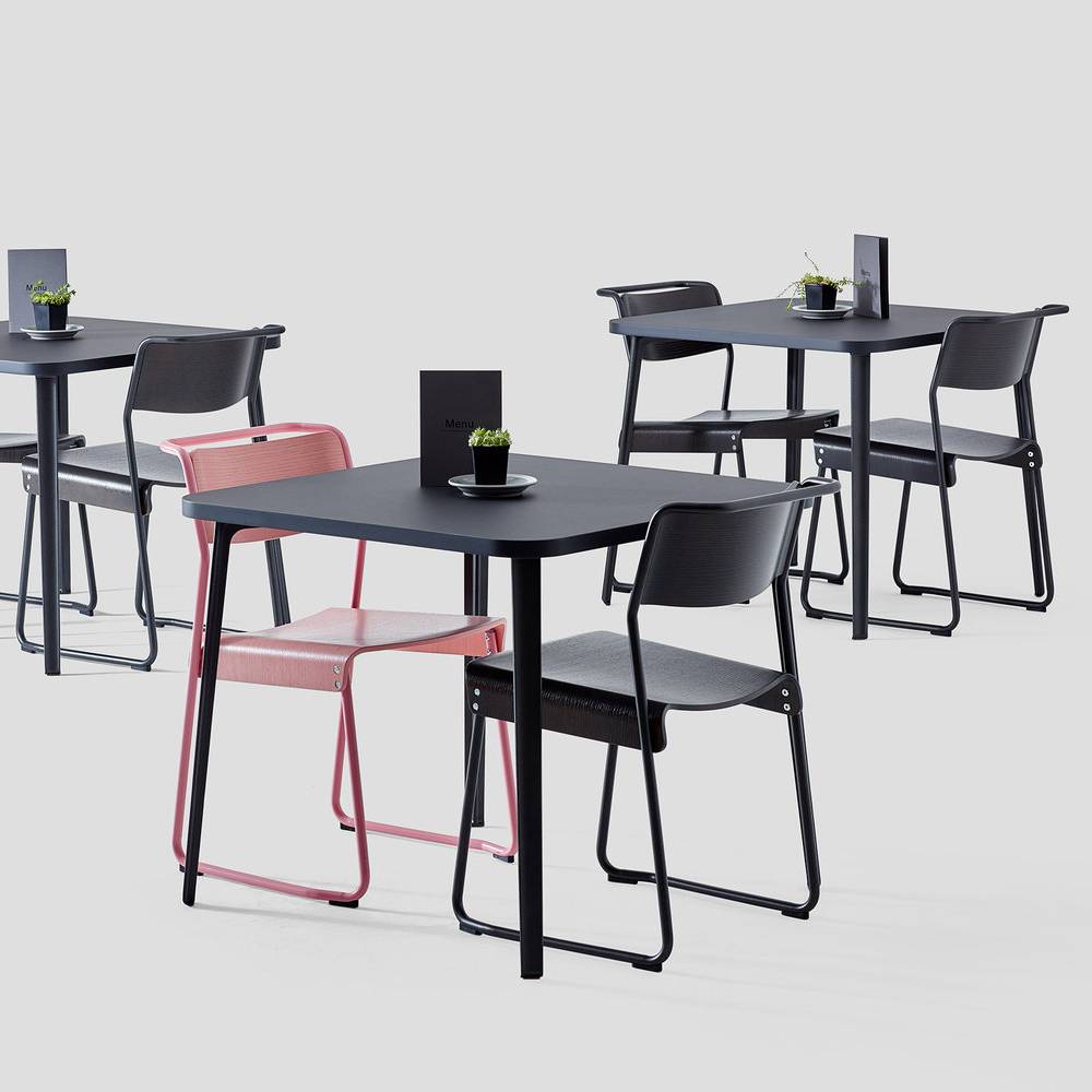Available as standard in a choice of 4 wood finishes with 11 colour options for the frame, VG&P’s Canteen Utility Chair is the pefect choice to add colour and quality to any interior project. Our design is inspired by the classic post-war British school chair. The simple, light-weight and stackable design retains the look and feel of the original, whilst simultaneously updating both the aesthetic and production methods. The precision bent tubular steel frame is a continuous piece and free from unsightly welds. The frame combines with a 12mm thick plywood seat and back to create a visually light, yet robust design.
