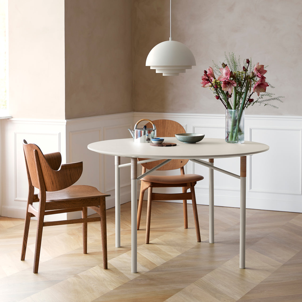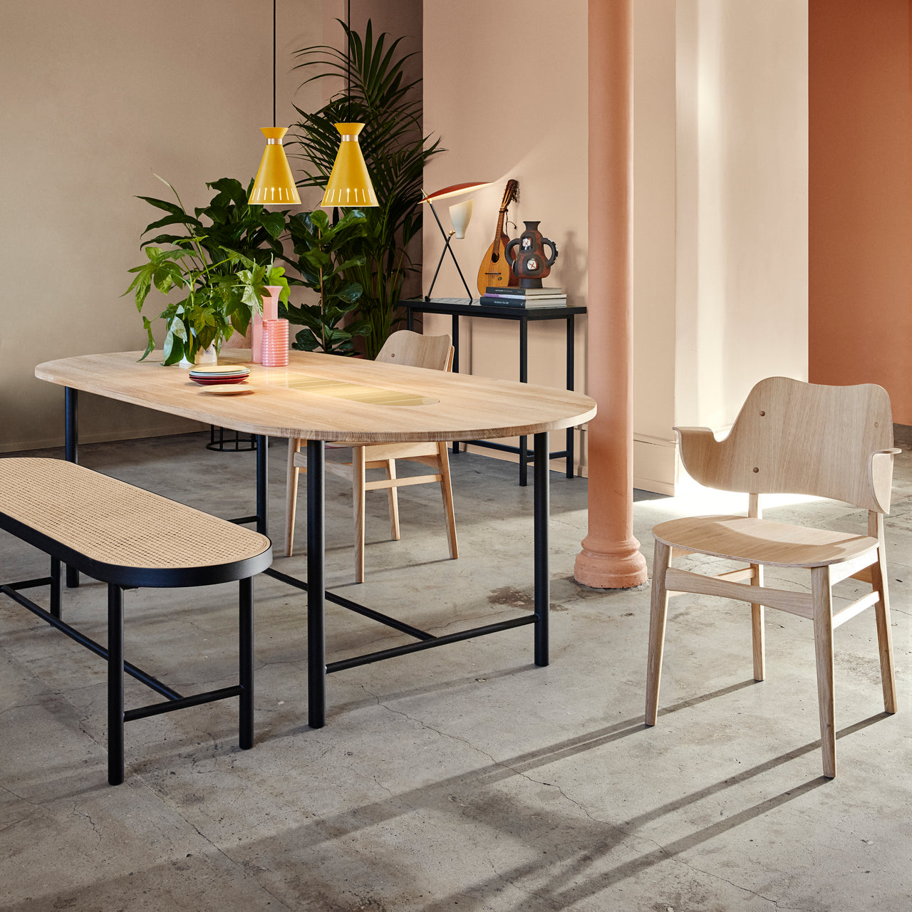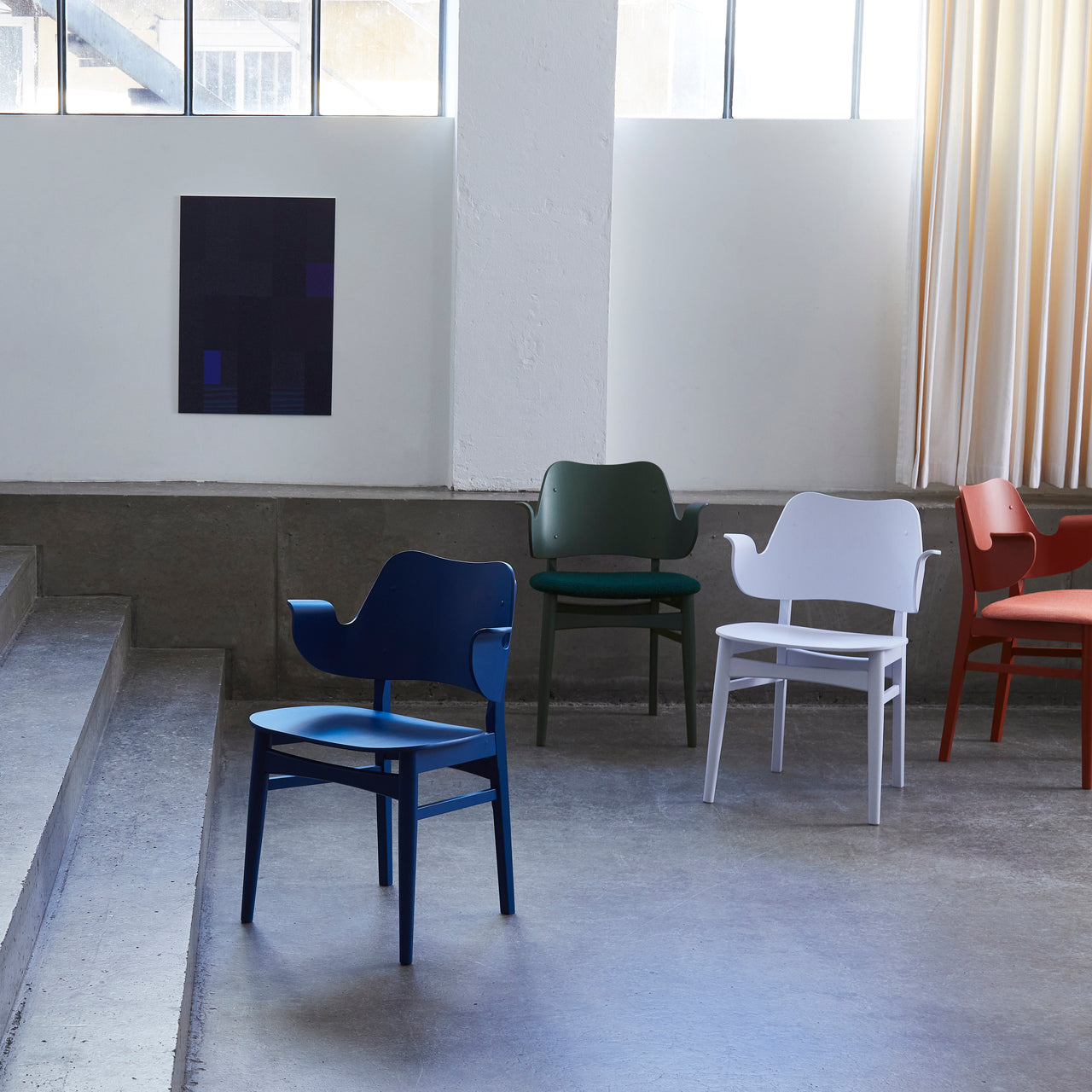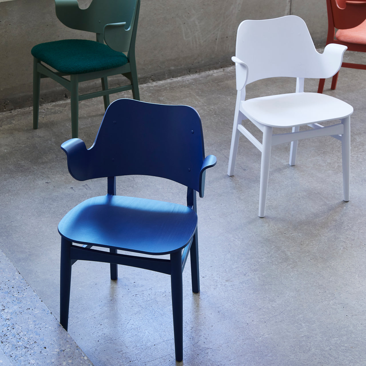 Fancy a modern-classic dining chair in dark green, red or perhaps sour yellow? As a tribute to the joy of color in the ‘50s, Gesture comes in a rainbow of lacquered oak hues (and an oiled natural finish for purists). Hans Olsen’s design is molded in a single piece and characterized by its welcoming contours complete with armrests and its comfortable ergonomics.