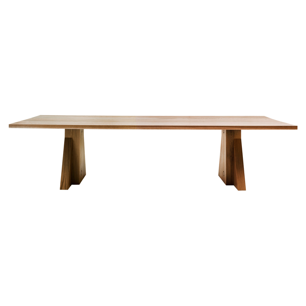 The Elmyr Dining Table, designed by Christopher Hardy, is inspired by brutalist architecture and modular construction. Hardy draws from the brutalist movement’s emphasis on raw materials and structural clarity, creating a table that feels substantial and grounded. The standout feature of the design is its asymmetrical composition, where large dowel detailing creates a striking visual rhythm. The table’s design is meant to anchor a space, serving as both a centerpiece and a conversation starter. Available in 2 sizes and finishes walnut, white oak, ash, and blackened ash.