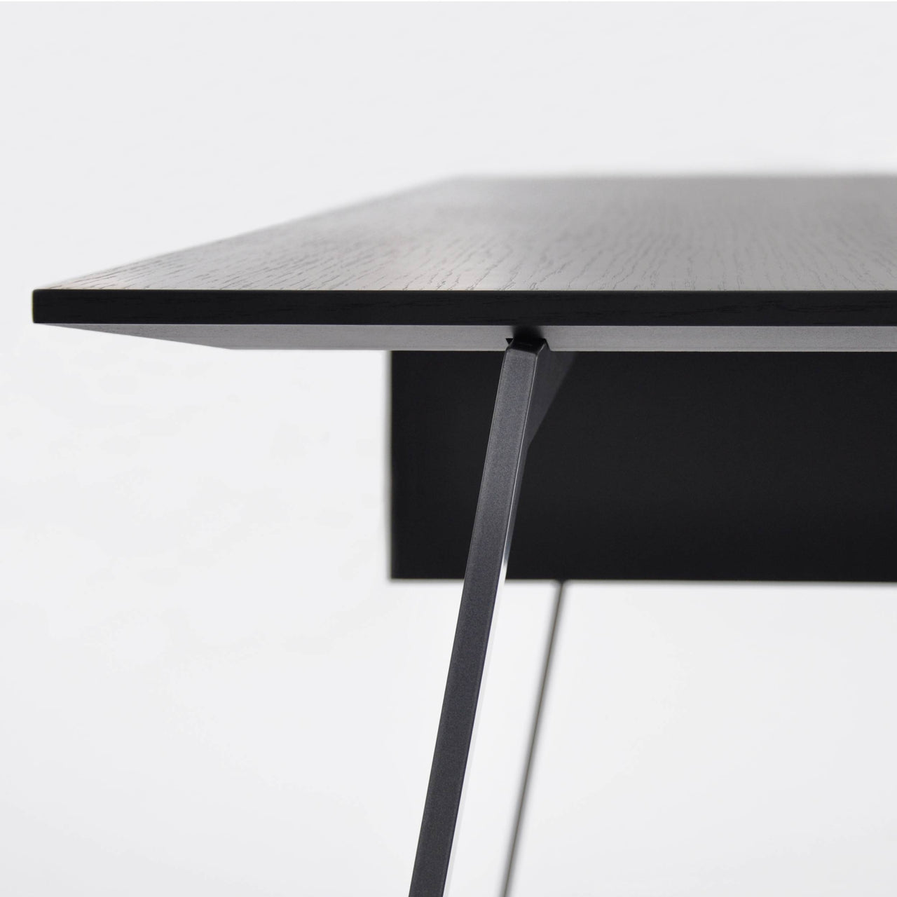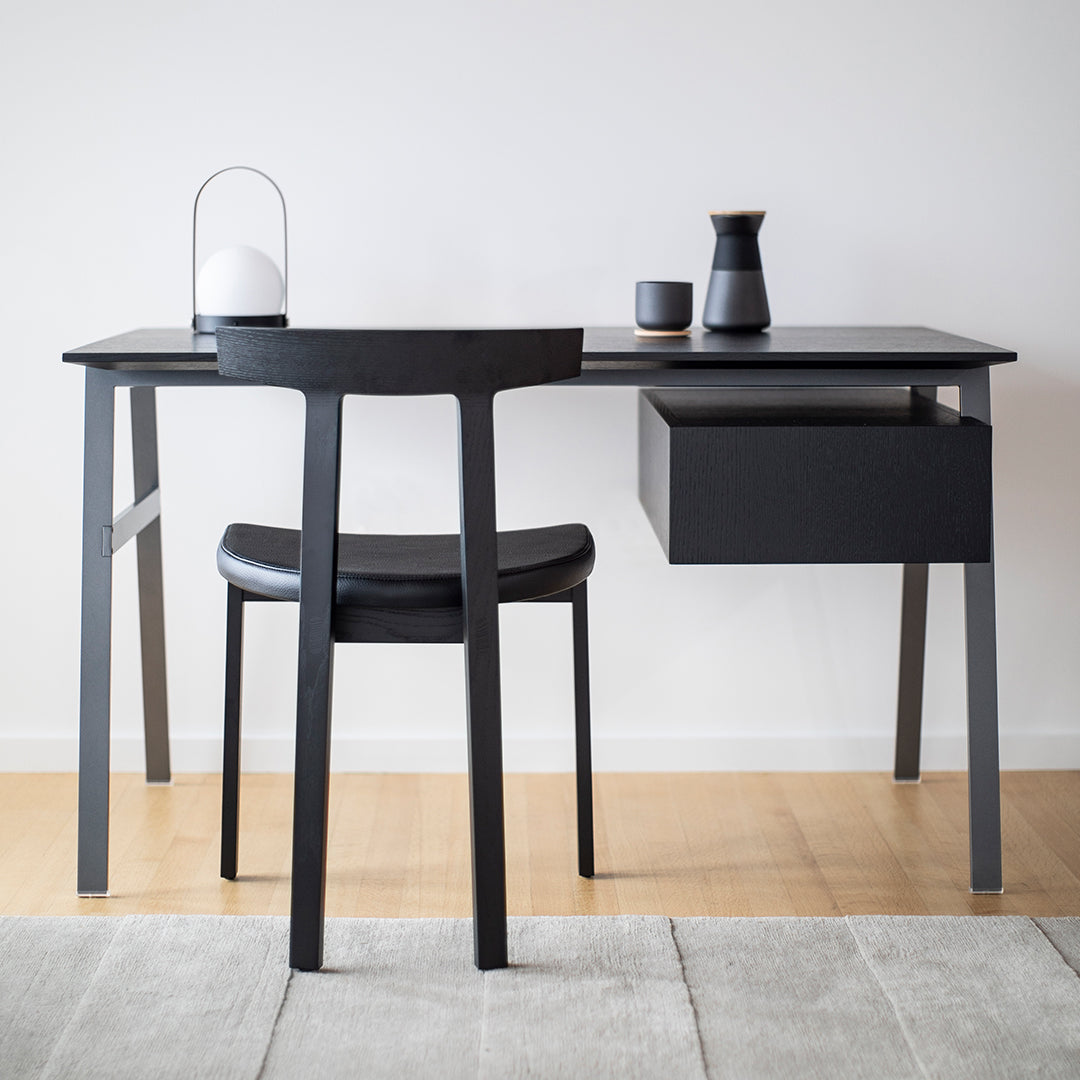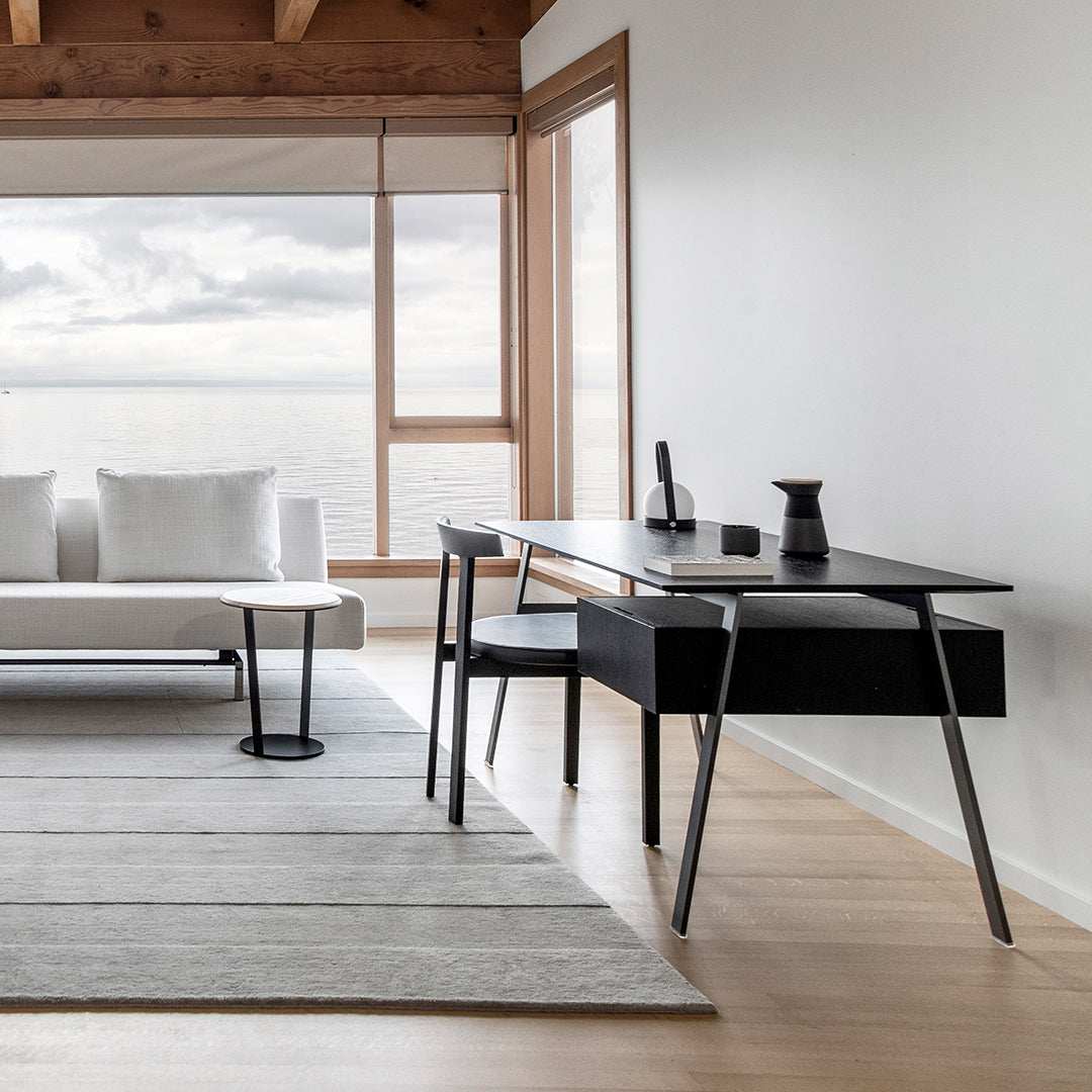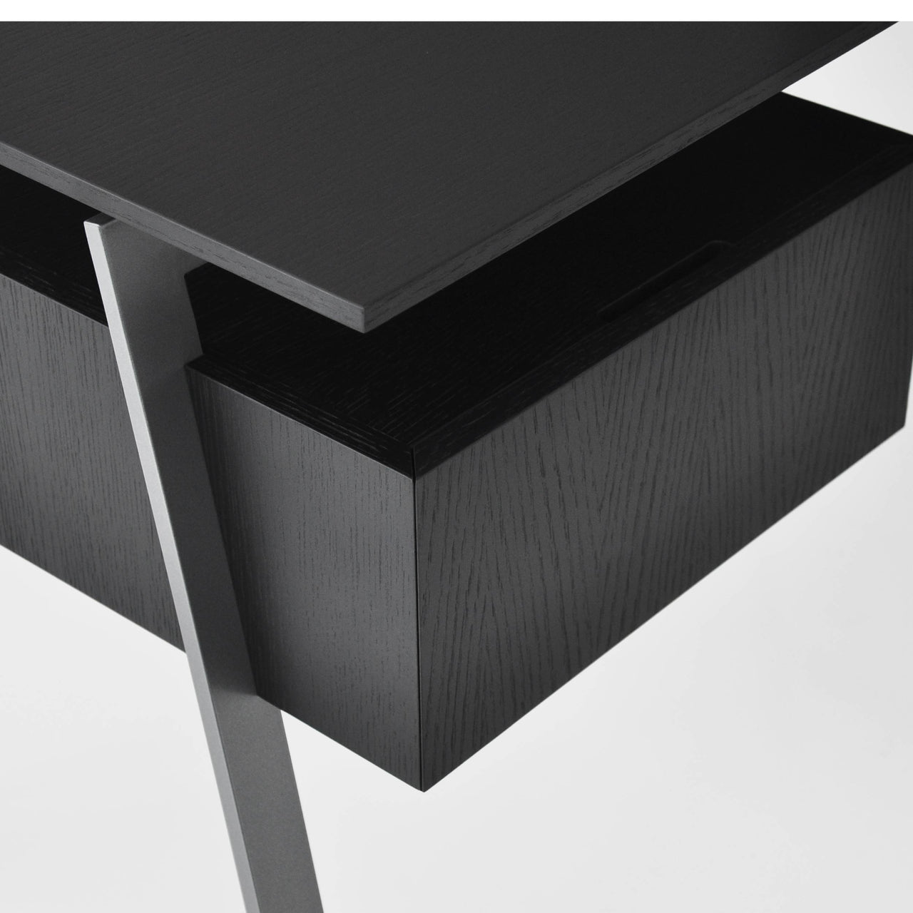 As more and more work migrates from traditional offices, an elegantly versatile option like Homework Desk brings it home in style. Configured for a right-hand orientation, the notched drawer is cantilevered from the frame for a floating appearance. Assembly is simple, with only a few bolts needed to create an extremely sturdy desk that is attractive from all angles. Drawer available in either carefully matched wood veneers or ultra high-gloss polyurethane and equipped with soft-close runners and cable-management opening. Choose the desktop in either durable tempered glass or a range of matte-lacquer wood finishes.
