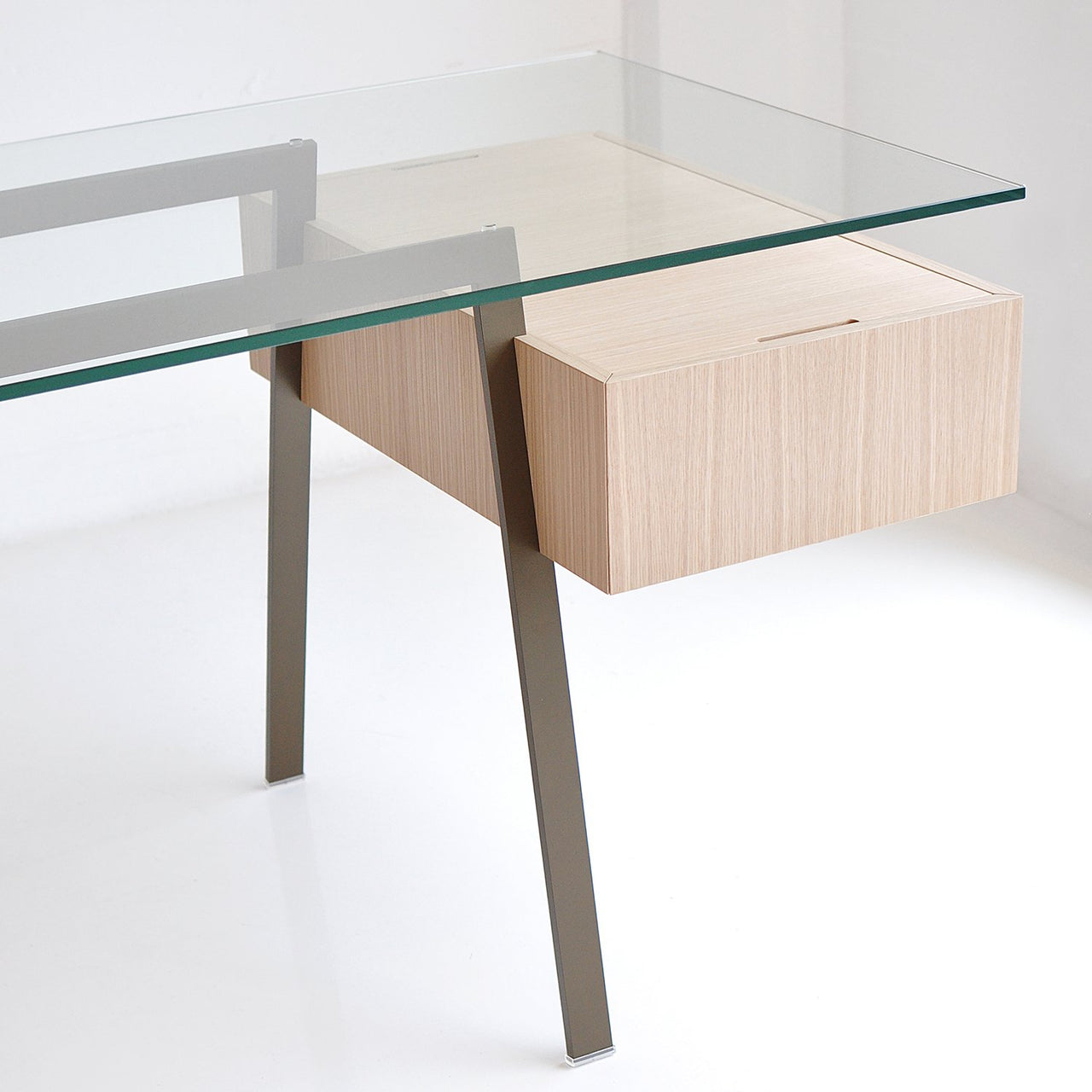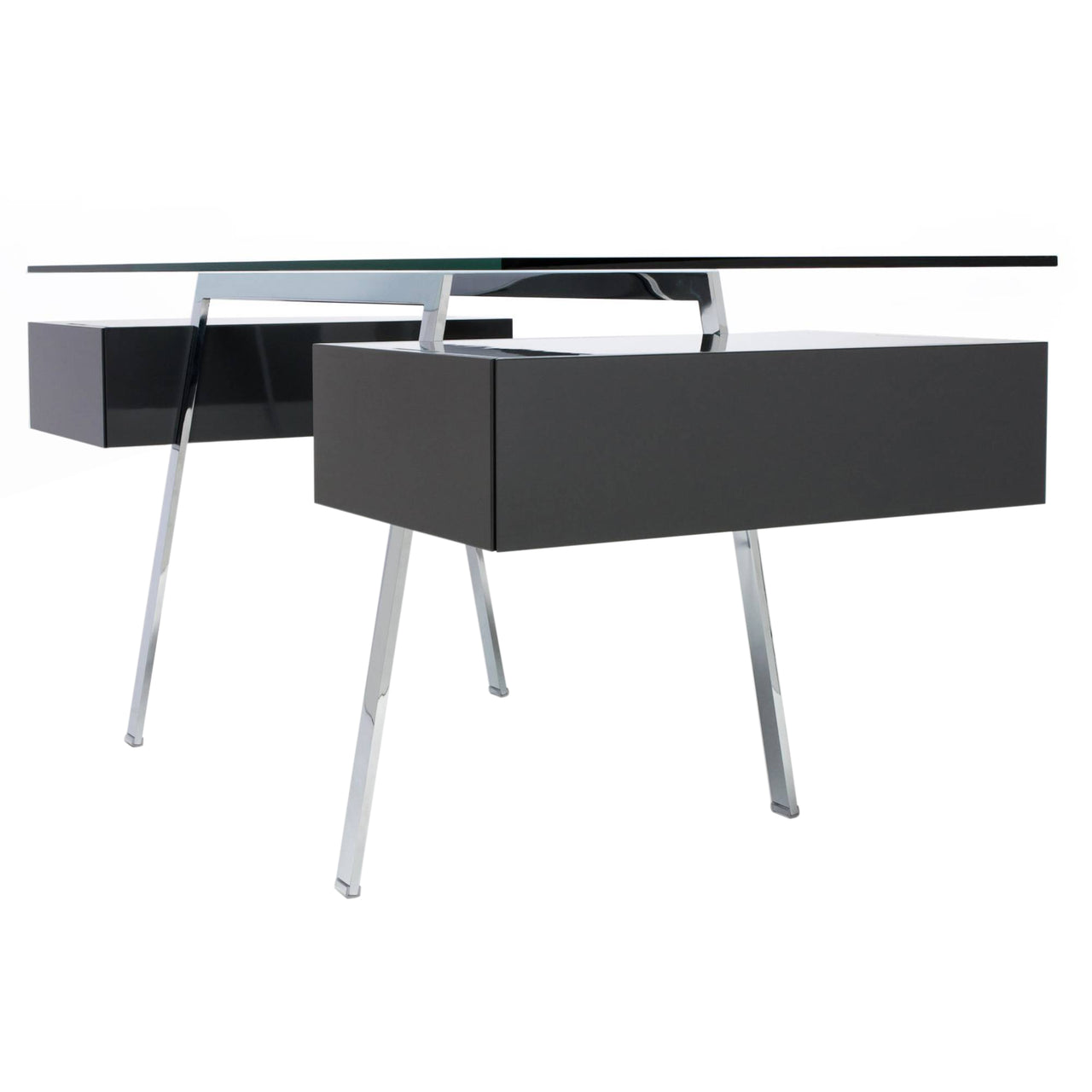 Working remotely is a way of life these days and Homework 2 offers an oft-desirable larger desktop. The uncluttered design centers on the pair of cantilevered drawers that seem to float within the frame. Desk assembly is a snap, with only a few bolts needed to create this extremely sturdy piece that is attractive from all angles. Drawers available in either carefully matched wood veneers or ultra high-gloss polyurethane and are equipped with soft-close runners and a cable-management space. Choose the desktop in either durable tempered glass or a range of matte-lacquer wood finishes to match the drawers.