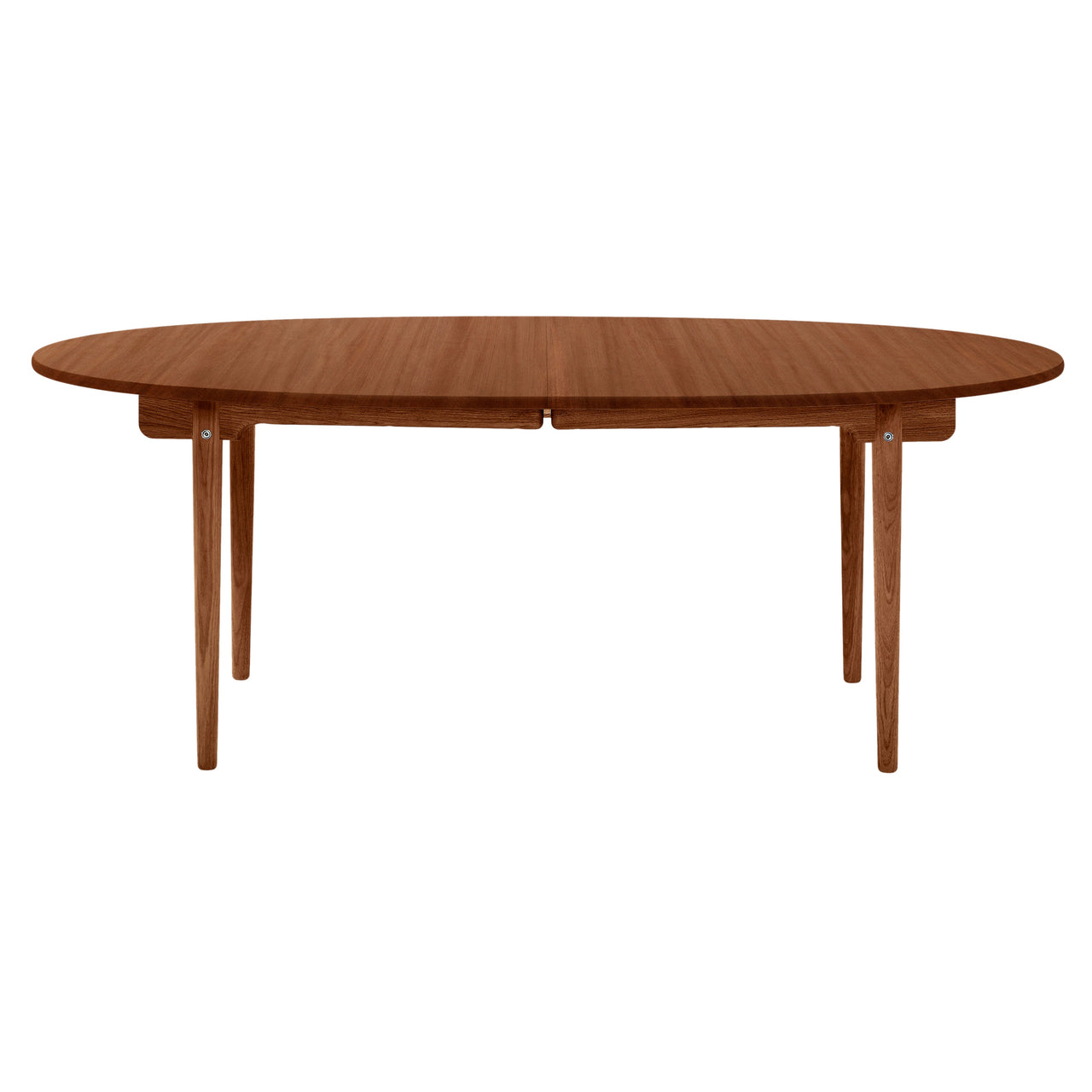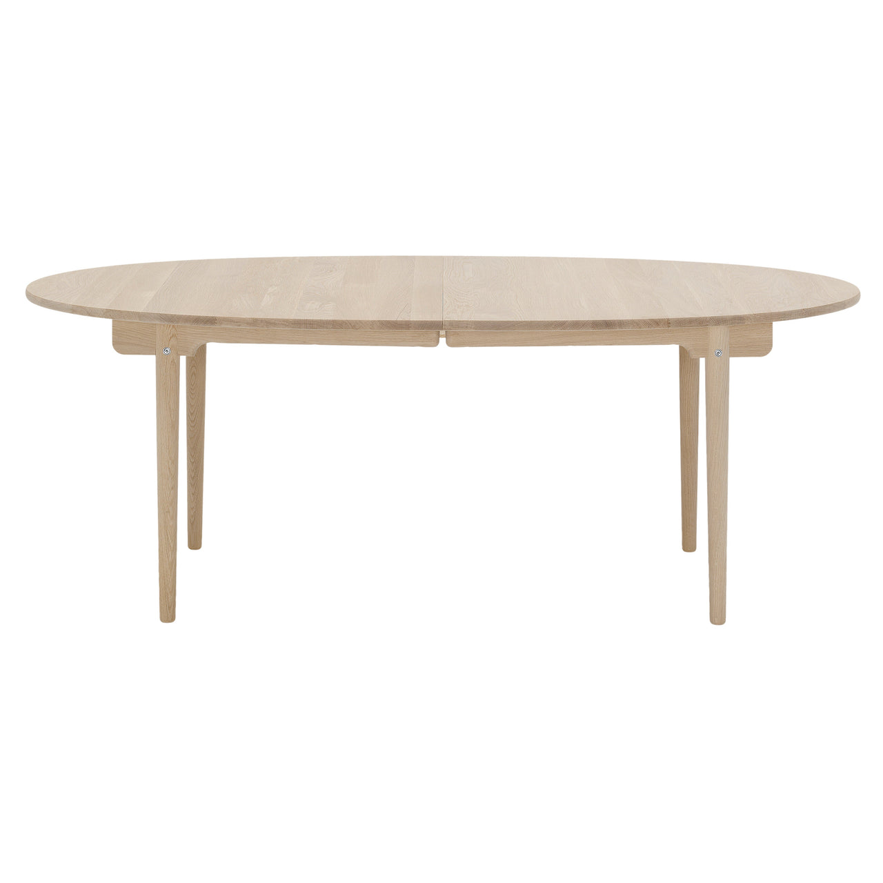 A gracious wood table that suits not just everyday dining but entertaining as well, CH338 is the mid-size variant in Hans J. Wegner’s trio designed in 1962. Featuring an elliptical tabletop and rounded legs that elegantly taper toward the floor, it offers optional extension leaves to function as needed for accommodating varied numbers of guests. Beautifully crafted in a choice of oak, walnut, beech or mahogany with oiled, lacquered or soaped finishes, it’s a timeless gathering point in any mealtime setting.