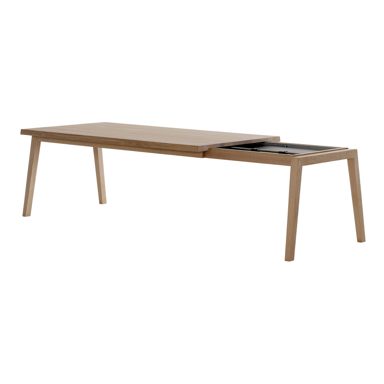 Copenhagen Design studio Strand + Hvass nods to previous Danish design icons while also exploring a new generation's sensibility in Extend. The dining table lives up to its name, with built-in leaves and a unique fold-out system hidden inside; simply pull on the table end to reveal seating for 4 extra guests. With its solid oak top and frame available in a variety of finishes, the black MDF extension leaves feature a honeycomb interior construction that makes them at once durable and lightweight.