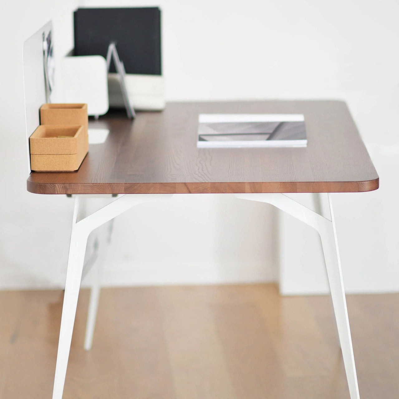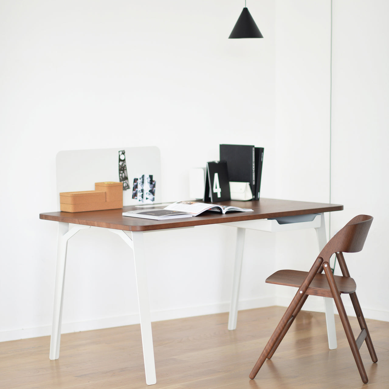 British designer Samuel Wilkinson's remit was to create a compact desk with cleanly appealing style and Mantis keeps things tidily organized. A removable plate in the solid-wood desktop reveals a storage tray below for hiding unsightly plugs and cables. There’s also as a small drawer for a laptop or papers, a file holder and a back panel that can act as a note board or a privacy screen.