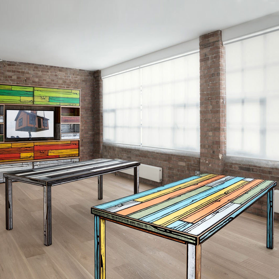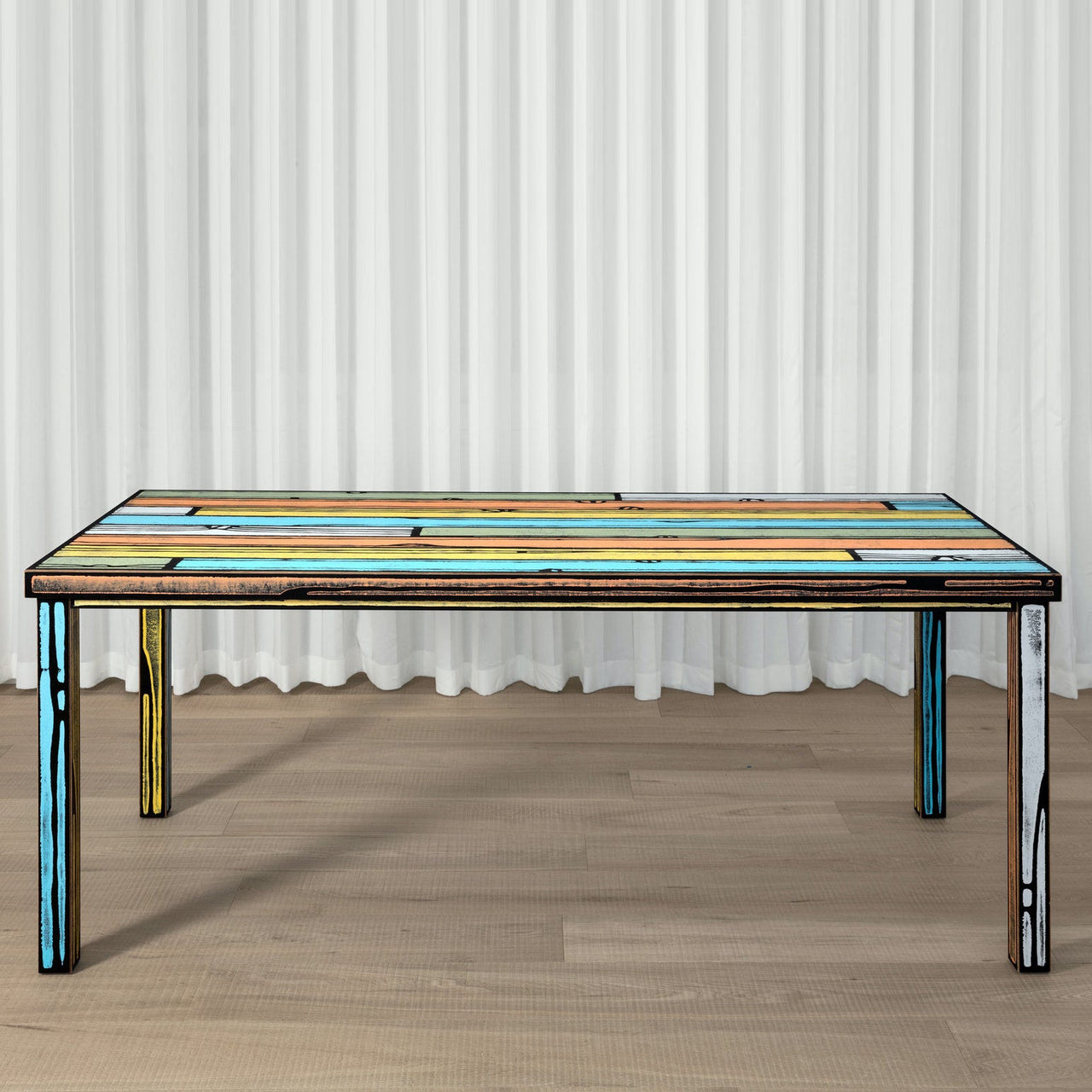 Established & Sons design director Sebastian Wrong teams up with noted British creative Richard Woods on a distinctive piece that blurs the line between furnishing and fine art. Wrongwoods is patterned with the artist's striking woodgrain block prints in a choice of black-and-white or a colorful Palm Springs-inspired combo. With a clear reference to midcentury sensibilities, Woods' signature "logos"—as he calls his illustrative motifs—make for an ironic pastiche that is also a remarkably serviceable wood table with a clear lacquer finish.