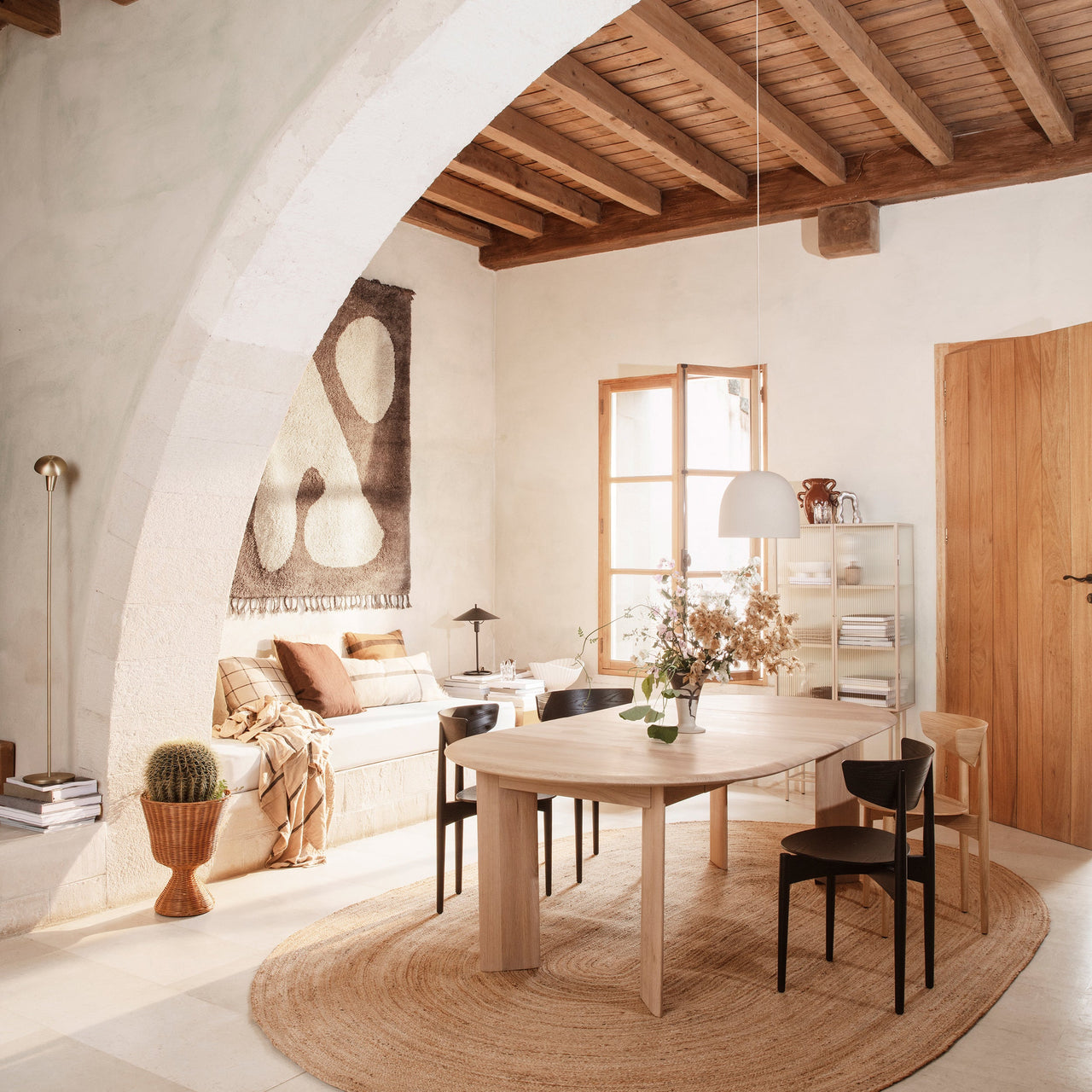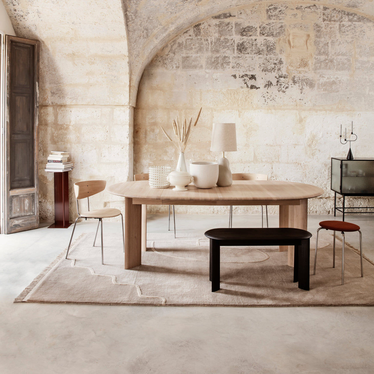 Fashioned entirely from solid oak, the broad, sculpted legs add a subtle interest to Ferm Living's "forever" dining table. Bevel is available in either a natural oiled or black oiled finish, and both the tabletop and legs are minimally detailed with gently rounded edges for a refined expression. Beautifully crafted, the table includes an extension leaf to accommodate additional guests and promises years of mealtime contentment.