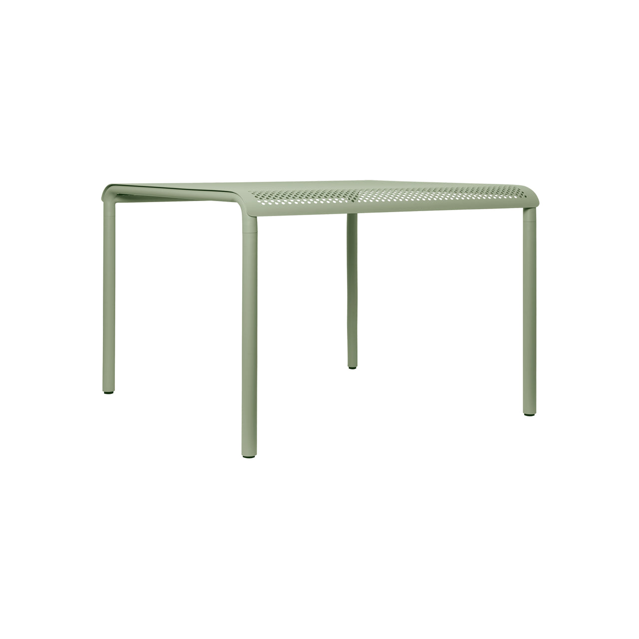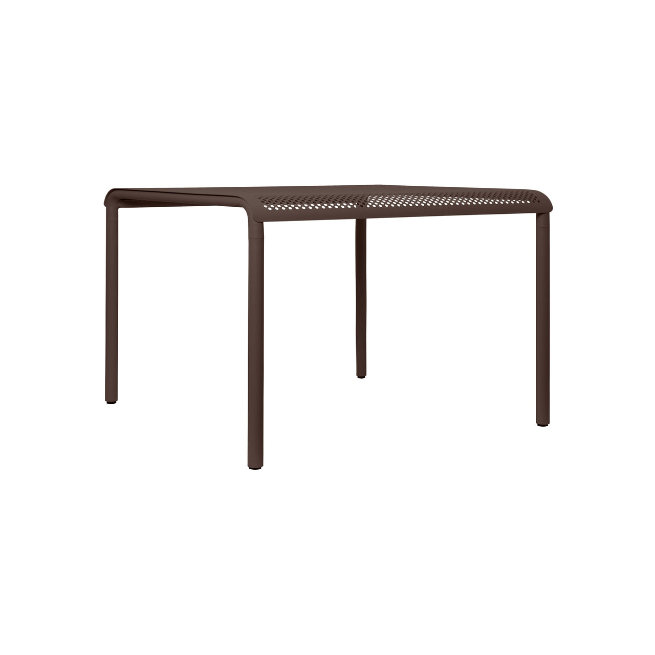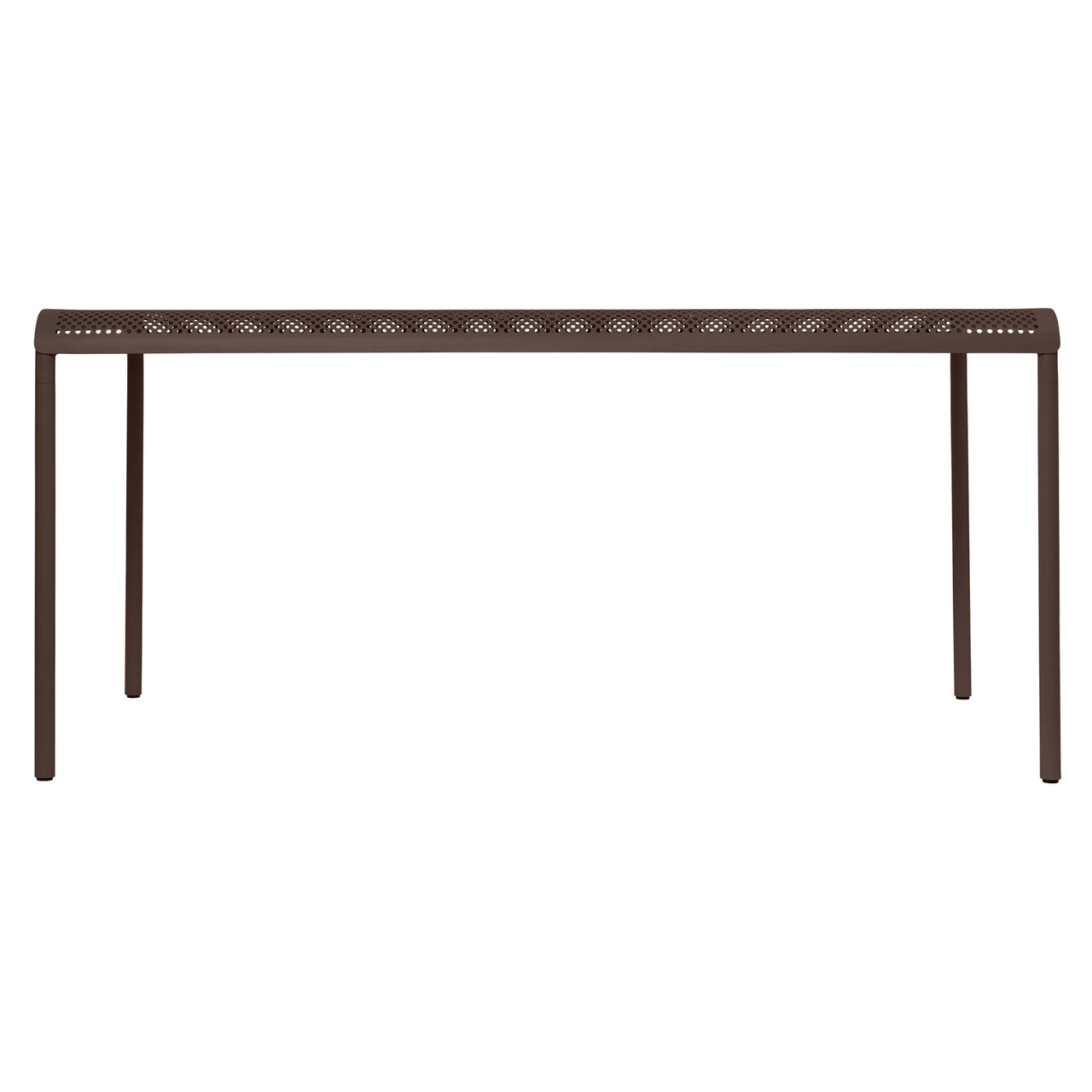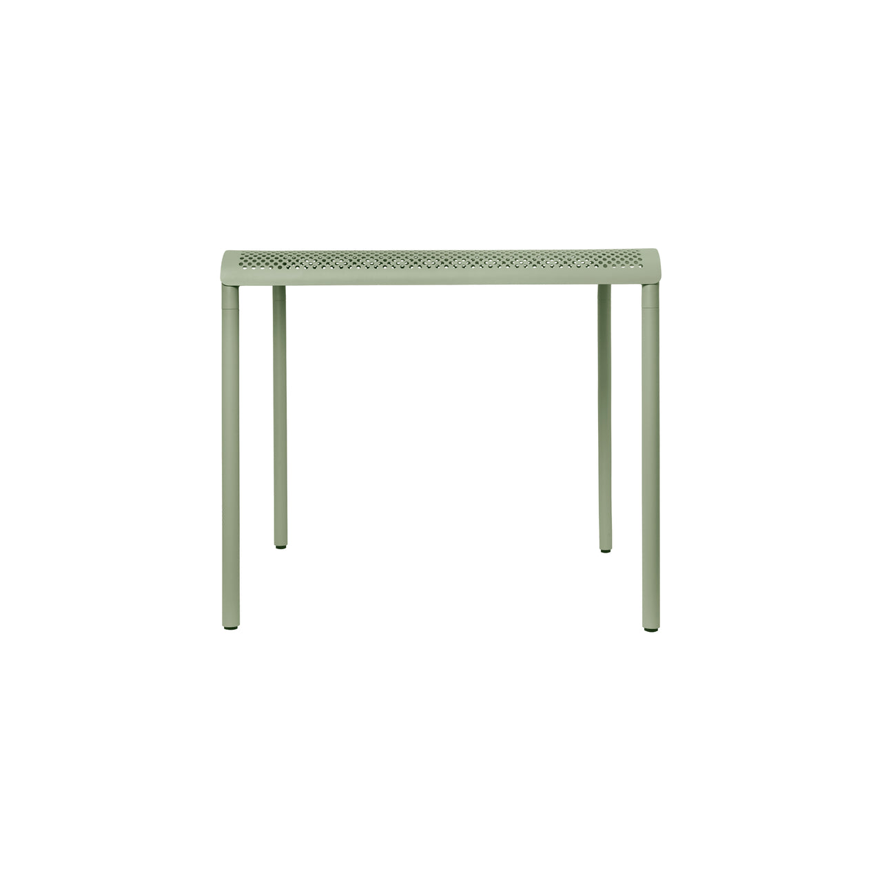 Perforated sections on the tabletop allow water to drain easily, helping the table dry quickly after rain. Made from powder-coated galvanised steel, it is built for long-term outdoor use. The table is available in two sizes and comes in Cashmere, Dark Chocolate, and Tea Green finishes.