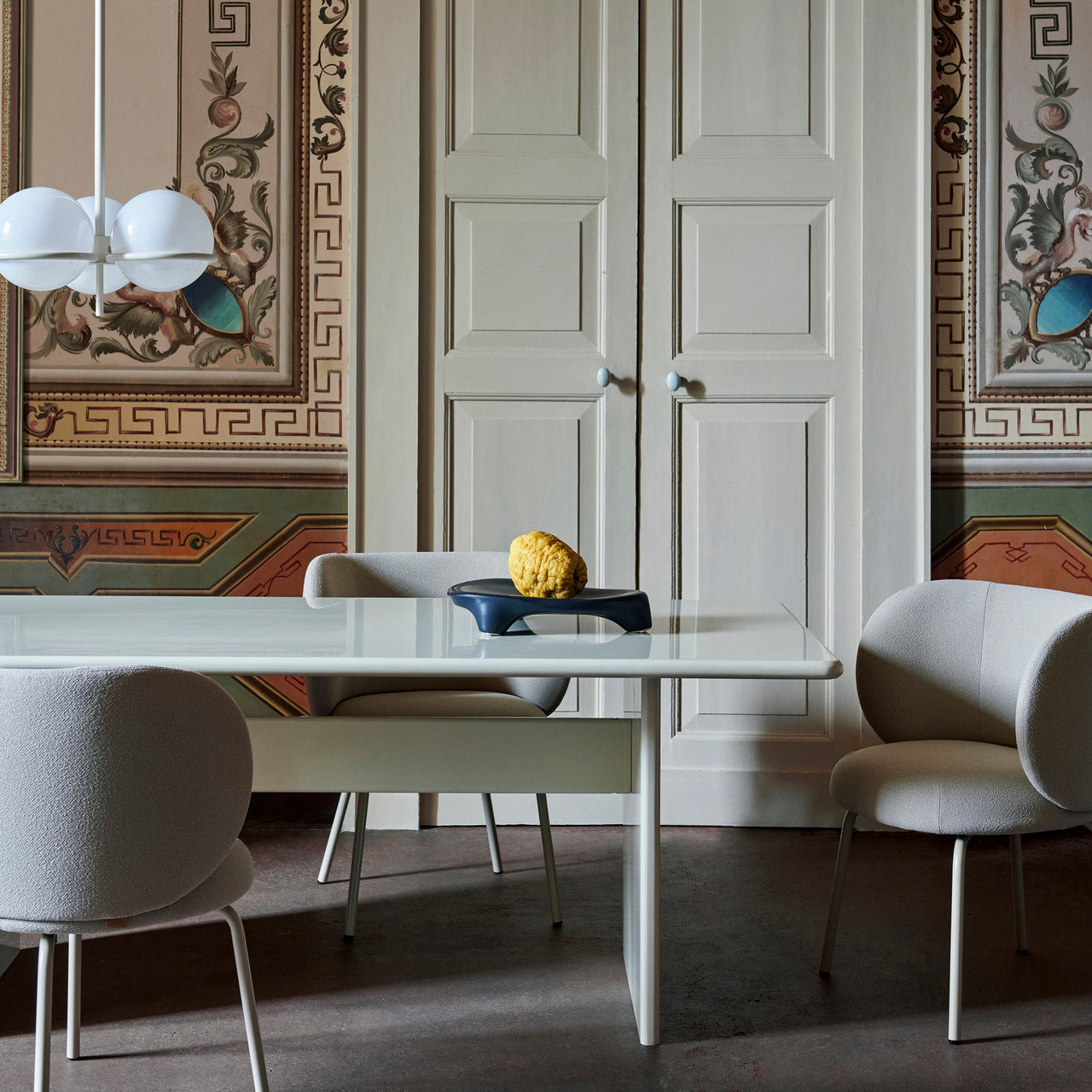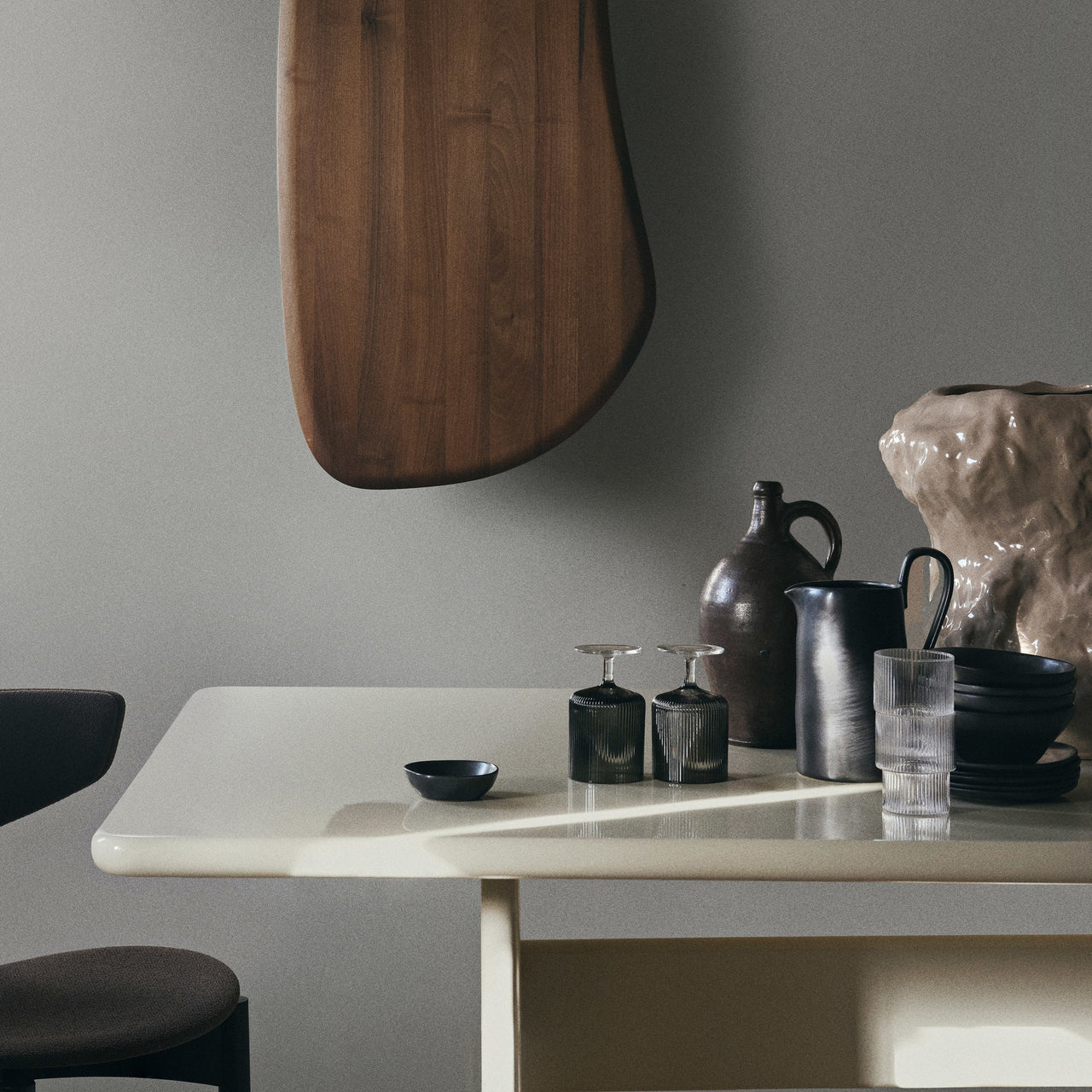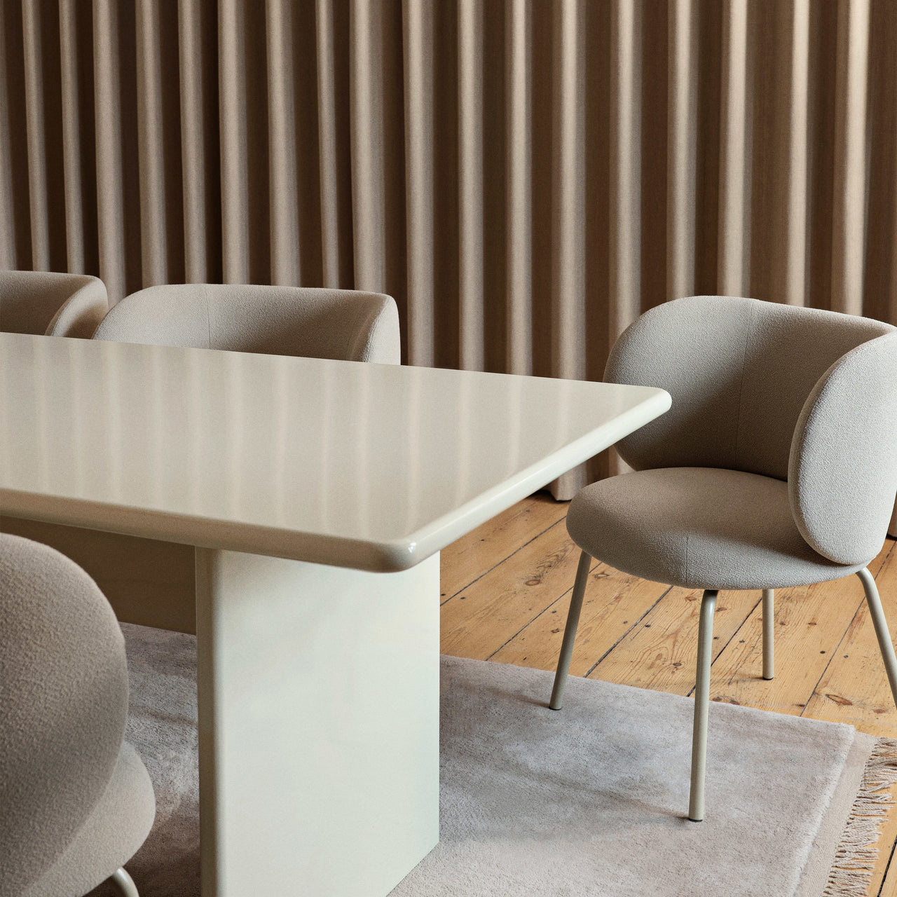 The Rink Dining Table blends a classic design with a smooth, high-gloss lacquer finish on an FSC™-certified MDF core, creating a sleek and reflective surface. Its shape is balanced by rounded edges, giving it a softer, modern feel. Offered in 2 sizes and in colors Eggshell or Tea Green, it can fit into a variety of dining spaces. This table seamlessly integrates with different interior styles.