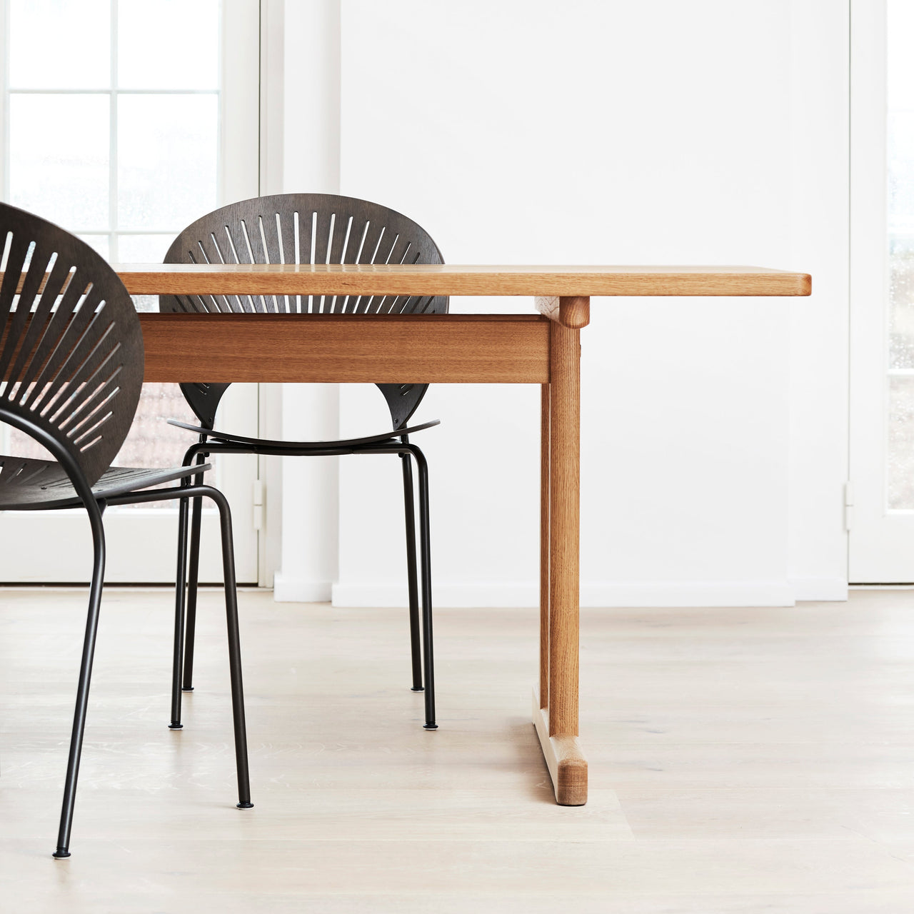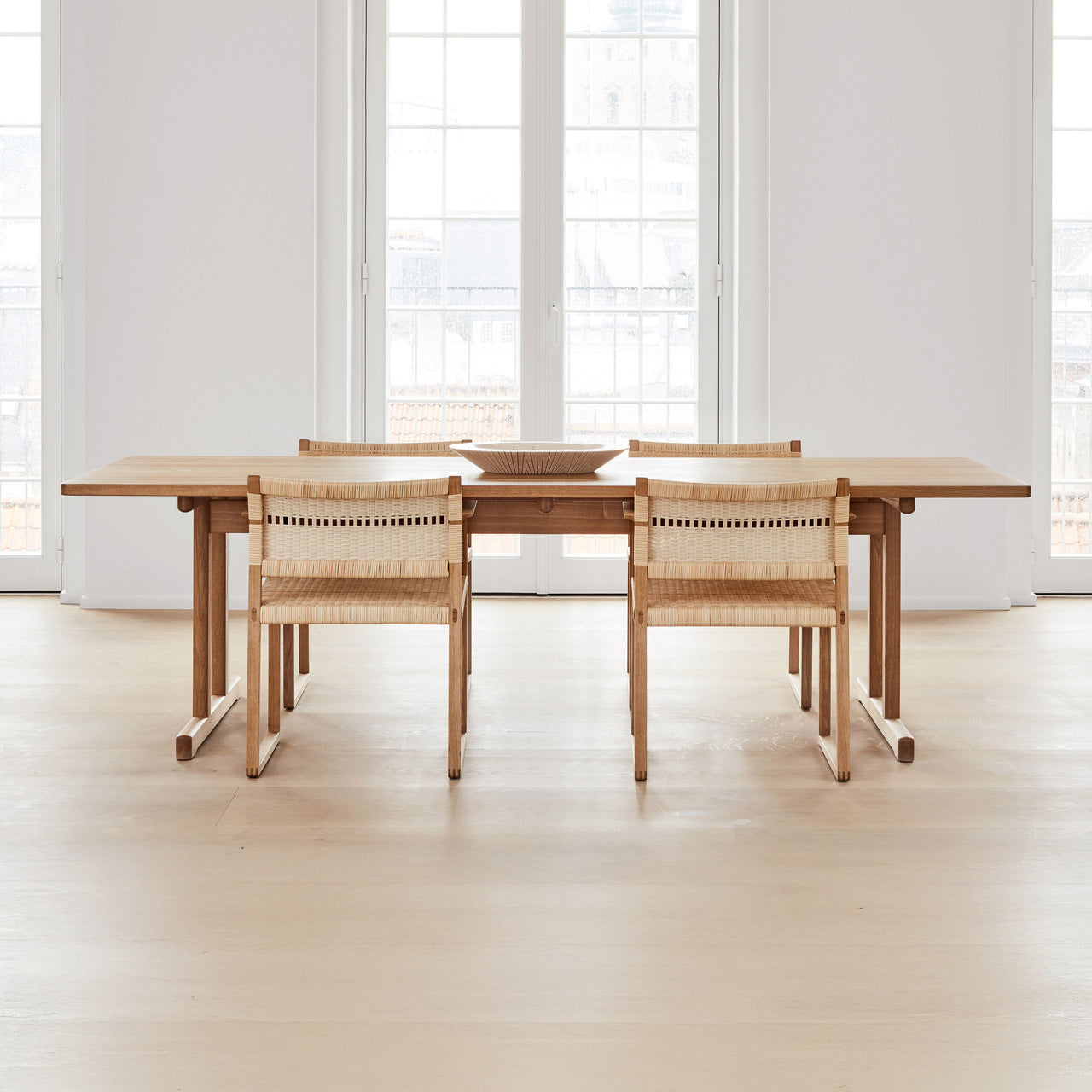 Børge Mogensen’s iconic Midcentury series of tables, inspired by the functional, utilitarian approach of the Shaker movement culminates in this longest rectangular version. Allowing the texture and character of the material, in this case, a premium selection of solid oak, to be the focal point, his 6386 reflects his ambition to create beautiful, distinctive furniture by emphasizing simple horizontal and vertical lines and surfaces. Giving off a sense of tranquility via its restrained aesthetic and unstinting craftsmanship, this is a dining table to last the ages, available in an extensive range of fine wood finishes.