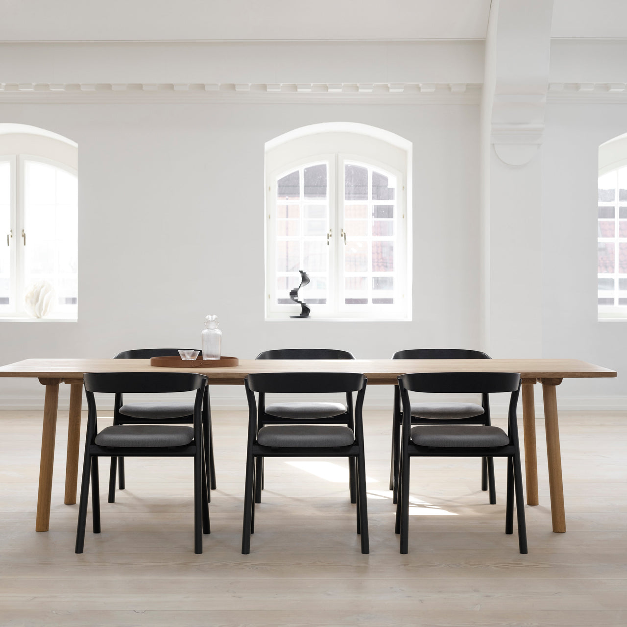 The design of Taro collection’s magnificent rectangular dining table was drawn from the premium European solid oak, aged upwards of 150 years. Jasper Morrison’s functional and understated ethos not only meant choosing the most appealing planks while mindful of minimizing wastage but also emphasizing the rich wood grain. A standout in either the home or in a work-conference setting, Fredericia’s table is a marvel of fine craftsmanship and is available in a choice of handsome oiled or lacquered finishes.