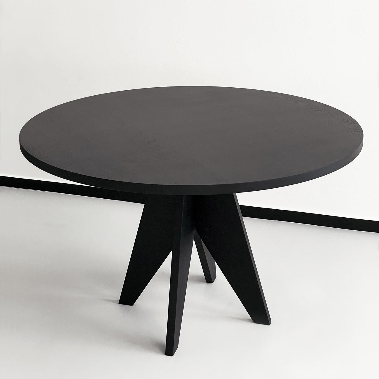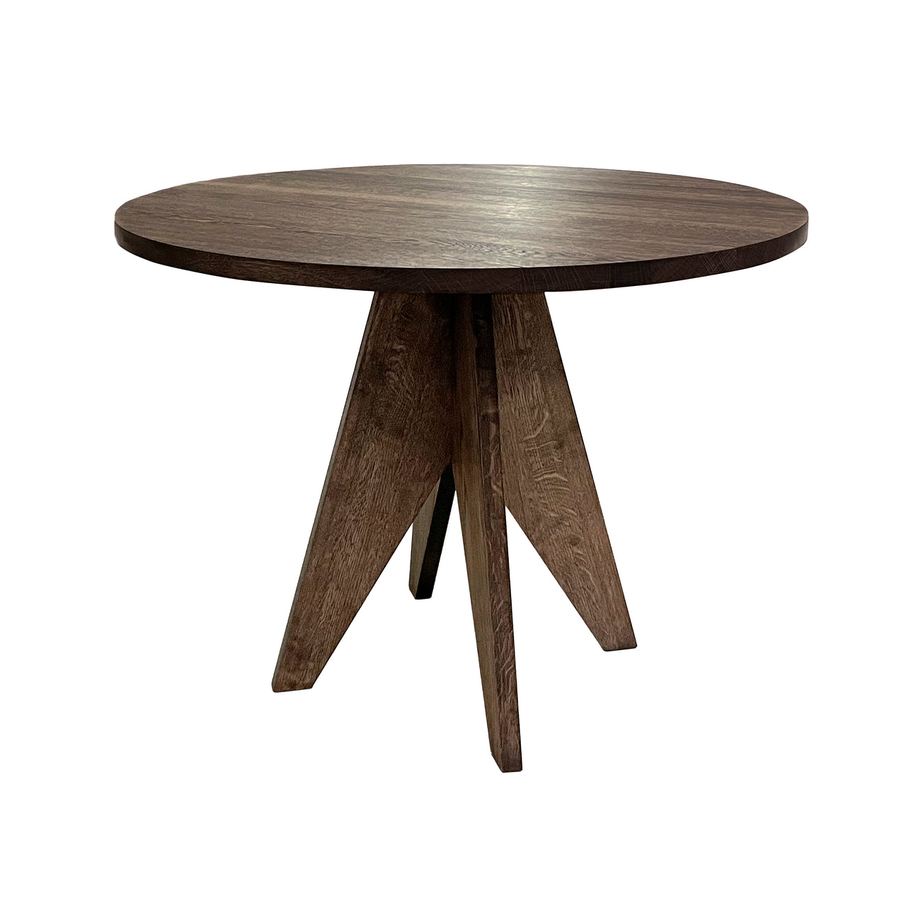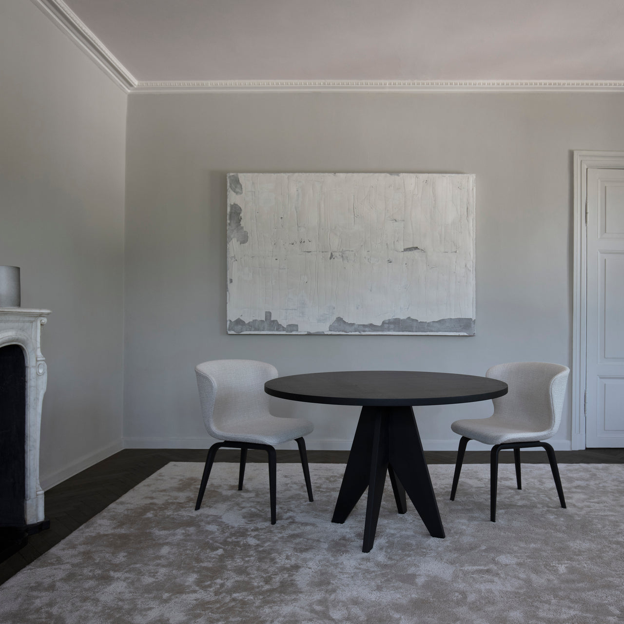 While following in the Scandinavian craft tradition, Pose Round offers a Modernist take as its elegant centered frame supports the tabletop and creates ample open space for sitting. The legs coalesce in a characteristic waist which gives the supports a rounded elegance, standing in contrast to the sturdiness of the solid oak. Available in a choice of 4 sizes and varied finishes.