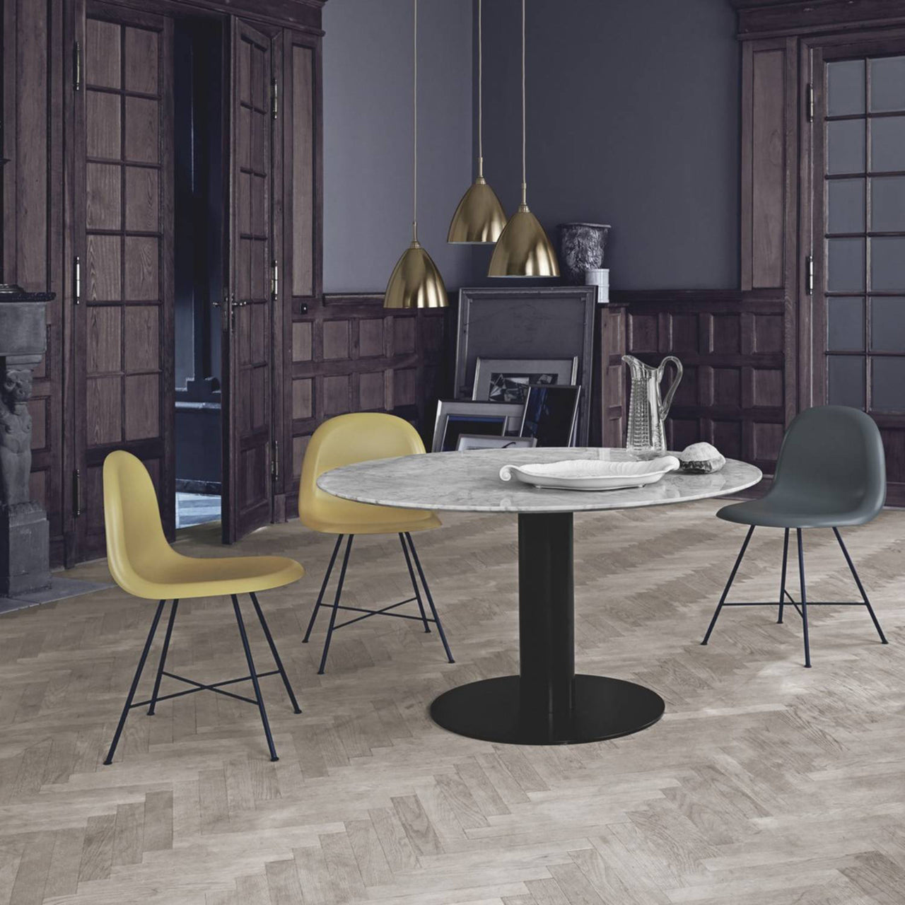 Designed with either a circular or elliptical top, the The Gubi 2.0 Dining Table fosters intimate gatherings, whether for dining, meetings, or casual socializing. The design team at Gubi drew inspiration from the concept of circles intersecting, resulting in a piece that emphasizes connection and fluidity. Its minimalist design, clean lines, and robust material options—ranging from luxurious marbles to warm wood finishes—offer a broad range of styling possibilities. Available in 3 sizes with base options of black or brass.