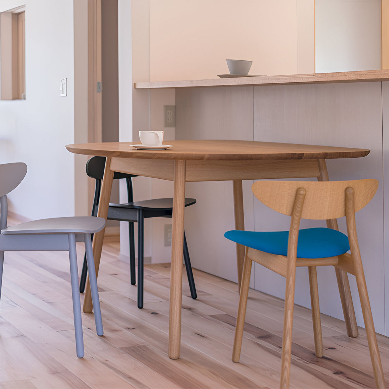 The Cobrina Dining Table is designed to make the most of smaller interiors. Made from solid white oak, it features a unique tabletop shape that stands out in any room. The straight edge allows it to fit neatly against a wall, making it ideal for compact spaces.