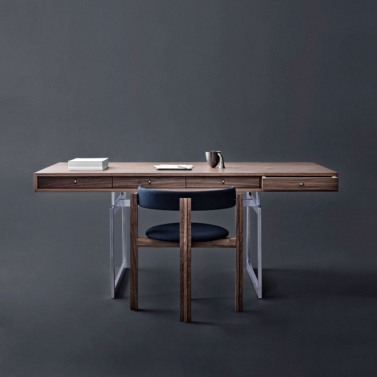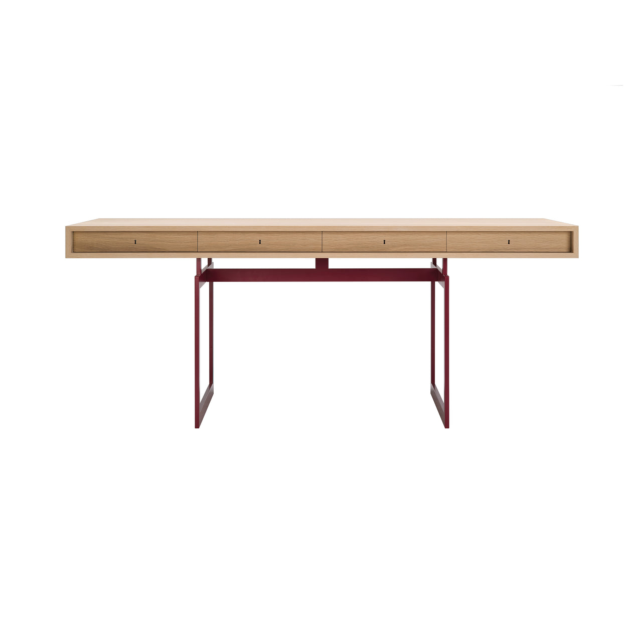 A female trailblazer of Danish design, Bodil Kjær often looked to American midcentury figures as inspiration for pieces like her iconic 1959 Office Desk. With its broad, seemingly floating surface, its pays subtle homage to the brothers Eames and Paul McCobb—and it's so emblematic of its era that it was dubbed the “James Bond desk” and featured thrice in the movie series (From Russia With Love; You Only Live Twice and On Her Majesty's Secret Service). With an outsize desktop made of solid oak and oak veneer, the geometric aluminum base is offered in a lacquered red or grey.