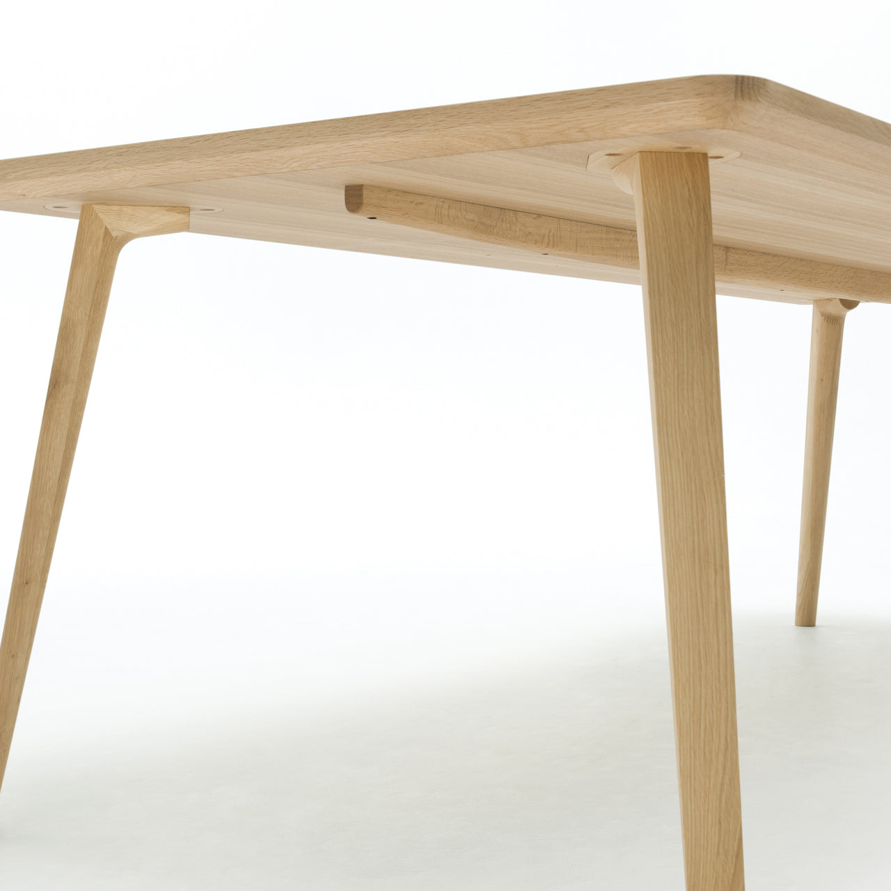 German-born designer Christian Haas attaches the tabletop's modular legs individually so they are easily detachable for flat-pack transportation. A similar, environmentally prescient point of view imbues Japanese heritage brand Karimoku New Standard, who manufacture the table and companion chair in their pristine factories just east of Nagoya. With the aim of preserving and revitalizing the country's forests, eco-conscious production dictates the selection of hardwood from long underused low-diameter tress. Furthering the sense of timeless longevity is Karimoku's painstaking craftsmanship and the piece's matte natural finish in solid Japanese oak wood. Christian's similar care for craft continue to be honed in he adopted home now of Porto, Portugal.