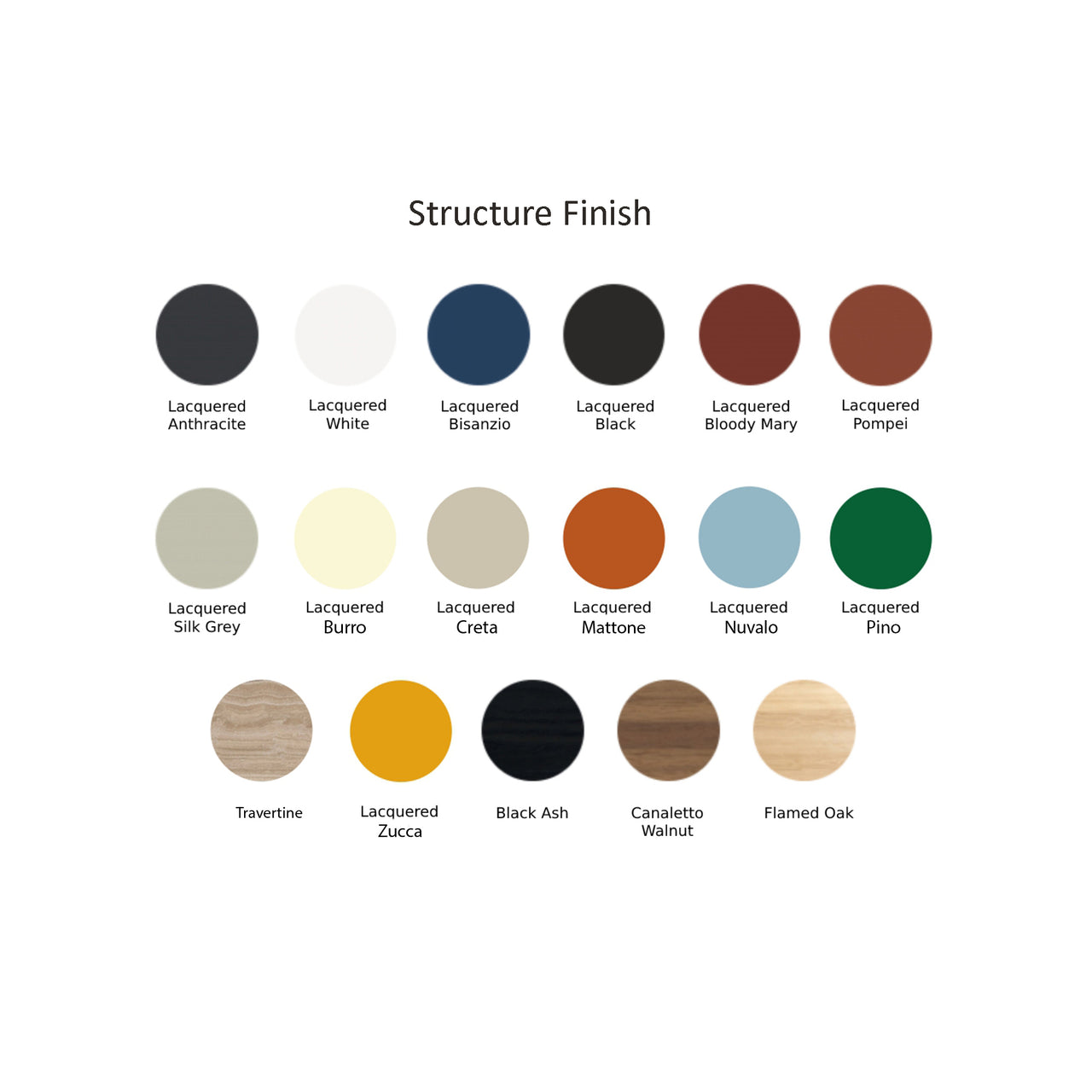 The Albio Dining Table features a rounded top with irregular edges, supported by a faceted triangular base. The design pairs the organic shape of the top with the sturdy structure of the base, resulting in a cohesive and sculptural piece. Available in Travertine marble, wood, or lacquer finishes, it suits a range of interior styles.