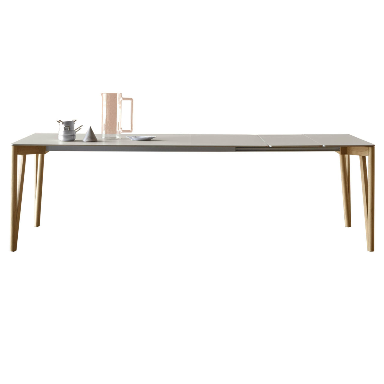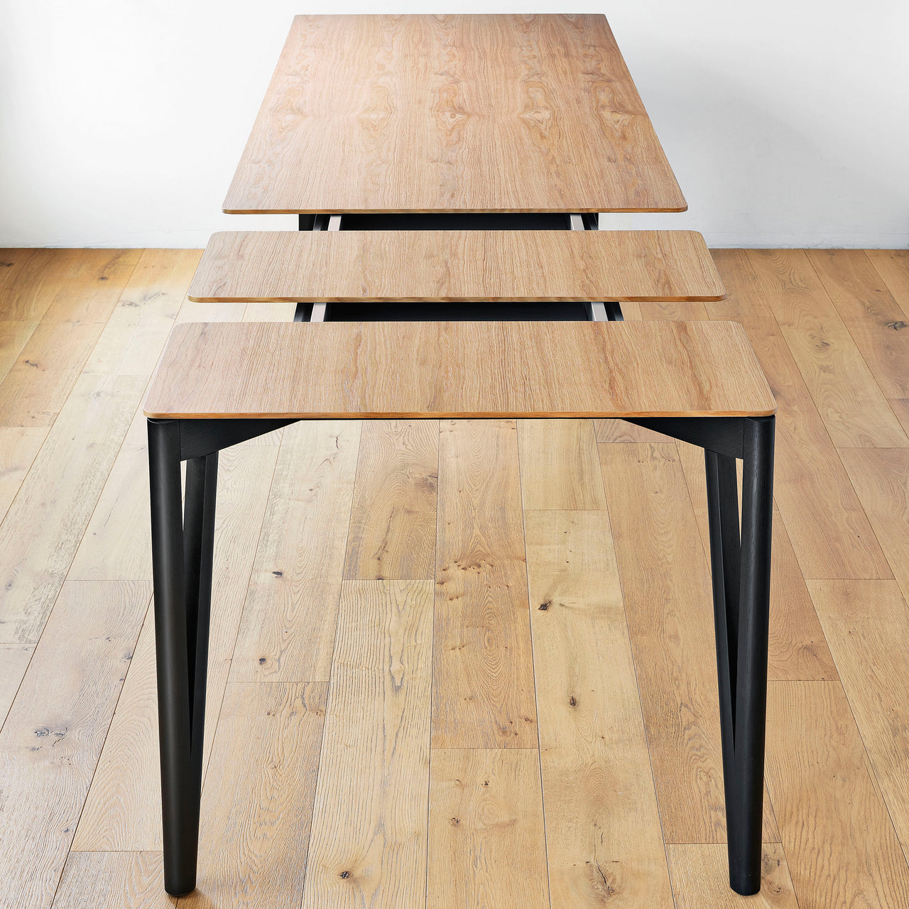 With 2 leaves to expand the table for extra guests, Decapos expansive large version makes a versatile anchor for a dining area. Designers Francesco Beghetto and Antonio Manaigo opt for a linear stylishness, with wood legs in a minimalist V-shape. The numerous tabletop options include glass, a travertine-like ceramic and Fenix laminate as well as rich wood varieties in Canaletto walnut, natural oak or black-stained ash. With a range of complementary wood varieties for the base, the table is adaptable to nearly any decor, superbly crafted in Italy by Miniforms.