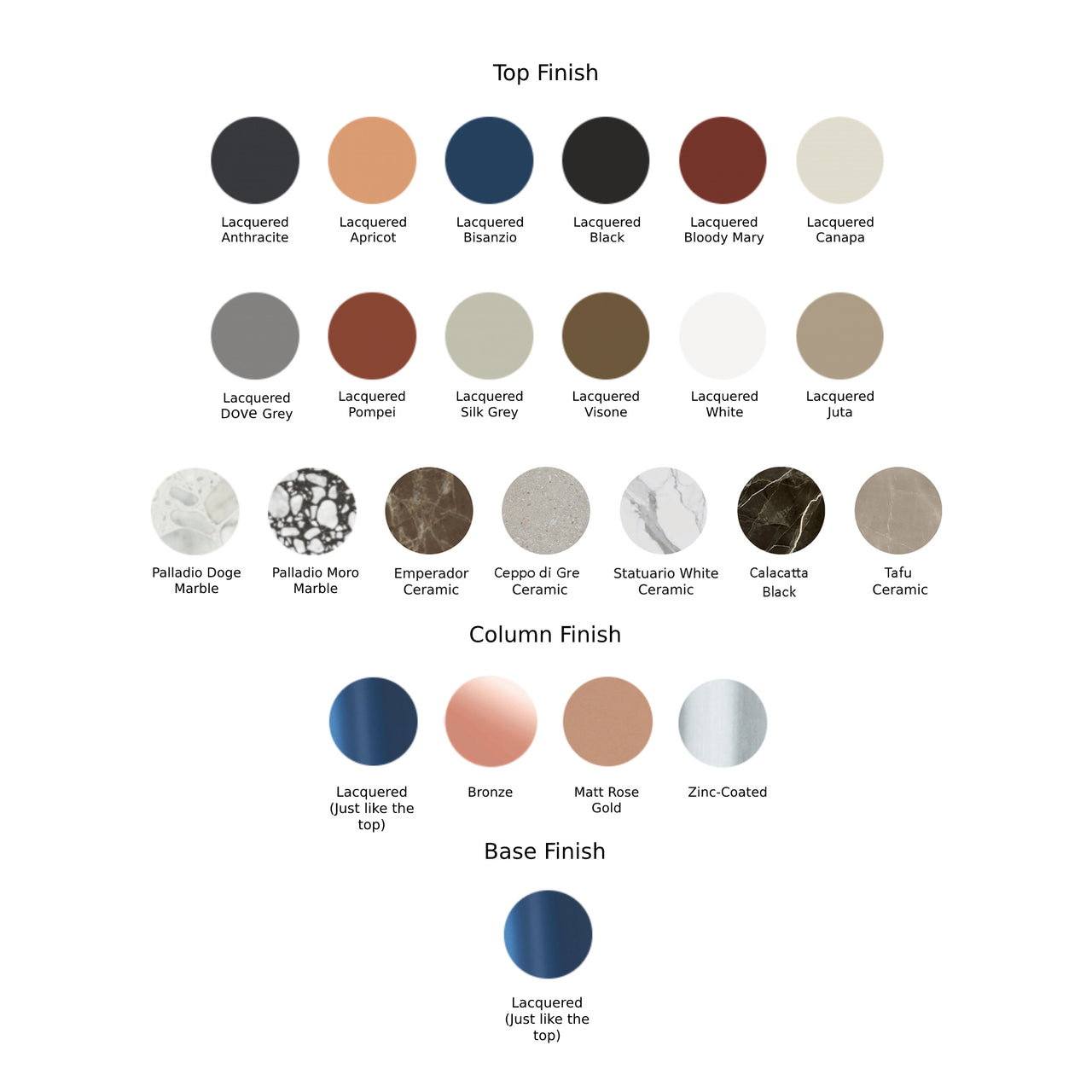 More column finishes such as copper, lacquered bisanzio, visone, jute, pompei, rose gold, and zinc-coated are available upon request.