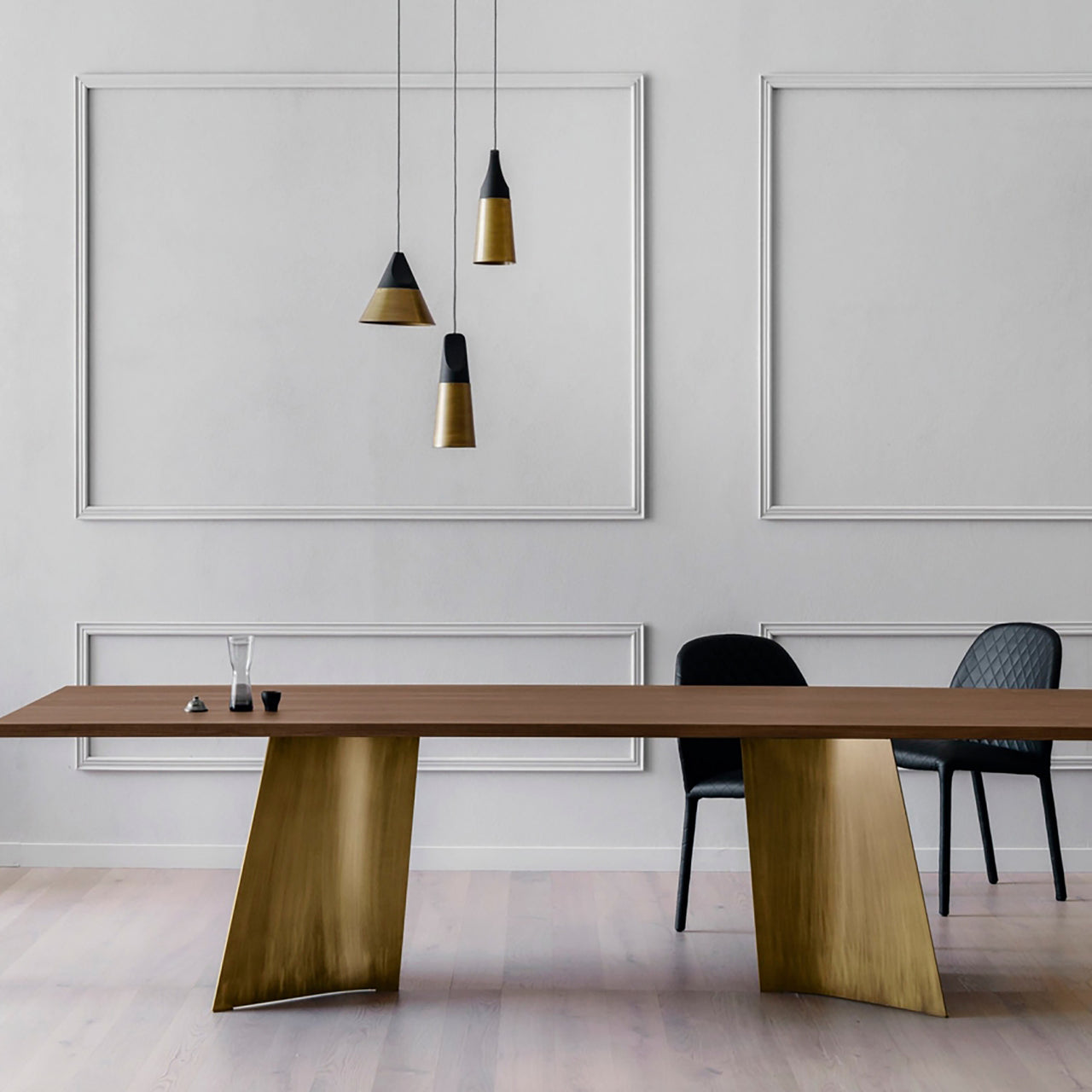 With dual sculptural supports in press-bent metal, Maggese brings a monumental quality to the dining room. Designer Paolo Cappello tops his creation with a wealth of surface choices oak or Canaletto walnut, ceramic that mimics travertine, high-tech laminate with wood edges or luxurious marble. Available in 3 sizes and with a selection of fine finishes for the metal base, Miniforms customized dining table is completely made in Italy for a lifetime of fine service.